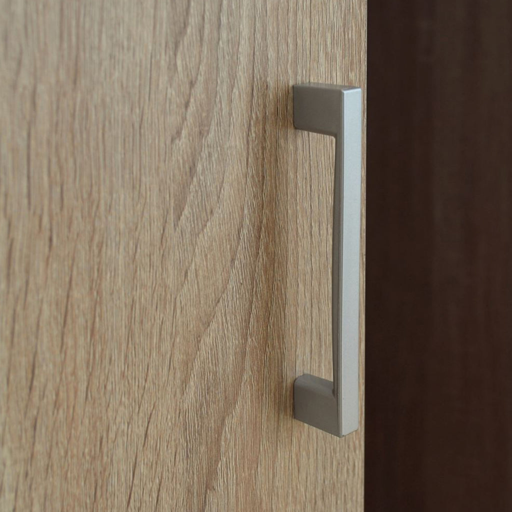 Двукрил меламинов гардероб в цвят Сонама. Вътре в гардероба има метална греда, специално изработена за окачване на дрехи. Размери: 80х43х181см. Размери на гардероба: 77.5x40x136 см. Размери на рафта: 77,5х40х30см. Височина на закачалката: 126 см. Забележки Гардеробът се предлага в разглобена опаковка с подробни инструкции за сглобяване.