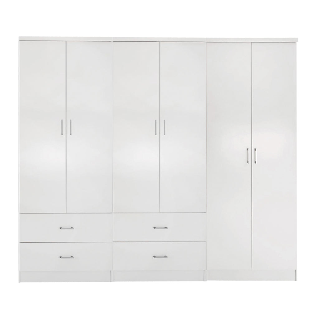 Гардероб Reina 6 врати с 4 чекмеджета - Бял 240x43x181 см