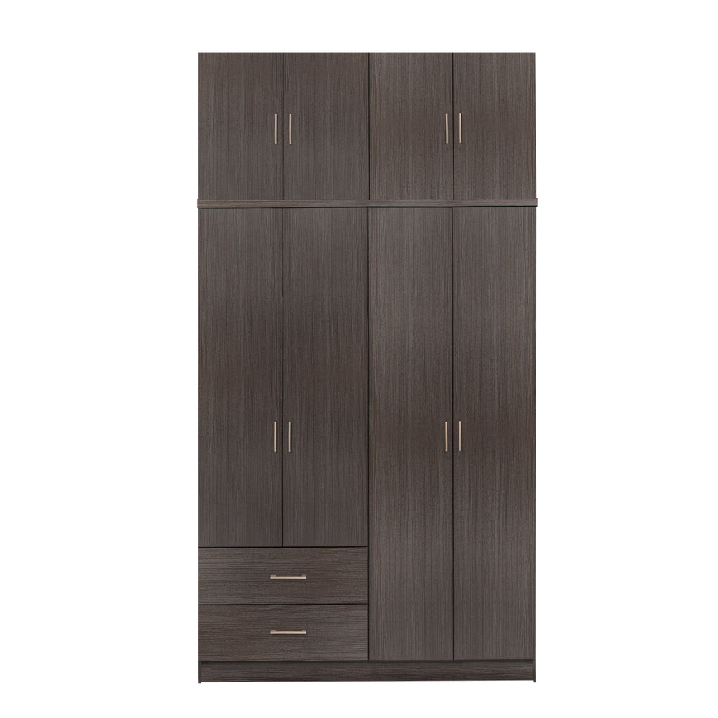 4-крилен меламинов гардероб с лофт в нюанс Зебрано. Вътре в гардероба има метална греда, специално изработена за окачване на дрехи, а в долната част има 2 големи чекмеджета за съхранение на дрехи. На останалите 2 листа има 4 зони за съхранение. Размери на гардероба: 120x42x181cm Размери на лофта: 120x42x60cm Общи размери: 120x42x241cm Забележки: 1) Гардеробът се предлага в разглобена опаковка с подробни инструкции за сглобяване.