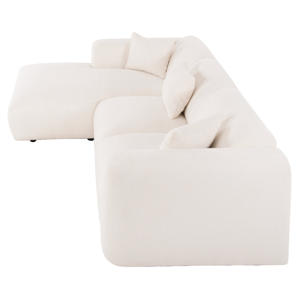 BRICKEN е нов 3-местен диван в ЛЯВА ъглова конфигурация (както го гледате) с красив дизайн и качествена дамаска в БЯЛ цвят. Като се започне от дизайна, диванът стига много ниско в стил "престилка", има широки рамена, като създава впечатлението, че се състои от 2 дивана и ъгъла, благодарение на красивите шевове! Частта, която оформя ъгъла, има същата естетика и е свързана към основния диван с вертикални панелни закачалки. Гърбът е твърд и удобен, като има 3 по-малки декоративни подложки. Седалката има пълнеж от пяна със средна твърдост, комбиниран с хоризонтални (зиг-заг) пружини, както и покет пружини, предлагащи несравним комфорт. И разбира се, предлагаме този диван с 3 години гаранция на рамката! Покрихме ли ви? РАЗМЕРИ: 110-282x98-160x72H см. Размери на седалката: 108-225x65-122 см. Размери на гърба: 225х30см. Височина на ръцете: 66 см. Височина на седалката: 44 см. Спецификации на дунапрена: DNS 30 КОНСТРУКТИВНИ МАТЕРИАЛИ: Рамката на дивана е изработена от мдф комбиниран с морски шперплат и части от масивно дърво. Това гарантира издръжливостта на дивана във времето. Платът за подплата е 100% pes-chenille (полиестерен шенил) със спецификации 340g/m2. Това е специална тъкан (прежда) с дебел косъм, по-лъскава от другите тъкани и подобна на кадифето по текстура, но по-издръжлива. Тази материя е водоотблъскваща, пожароустойчива (негорима) и разбира се отговаря на европейския регламент "REACH" при производството на материята, което означава, че не са използвани никакви химикали. ПОДДРЪЖКА: За почистване е достатъчно просто почистване и минаване с влажна кърпа при леки петна. При по-трудни петна се препоръчва химическо чистене. Не използвайте химически почистващи препарати. *Диванът се доставя разглобен във фабрична опаковка ** Цветопредаването на продукта може леко да се различава от фотографското изображение на вашия екран.