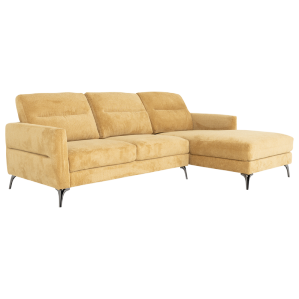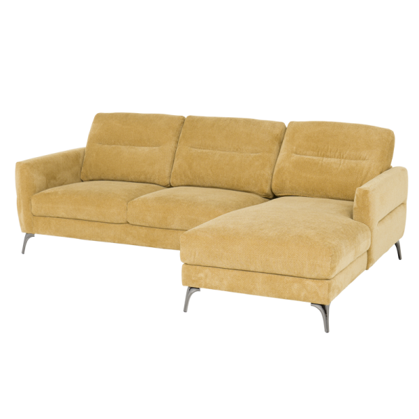 Ъглов диван INGA е модерно и удобно решение за всекидневна зона, съчетаващо стил и функционалност. Конструкцията му е изработена от дърво и метал, което гарантира стабилност и дълготрайност. Седалката предлага изключителен комфорт благодарение на пълнежа от полиуретан и покет пружини, които осигуряват еластичност и равномерна опора. Тапицерията от висококачествена дамаска придава мекота и елегантен вид, а металните крака допълват съвременния му характер. INGA е идеален избор за интериори, в които комфортът и стилът вървят ръка за ръка.