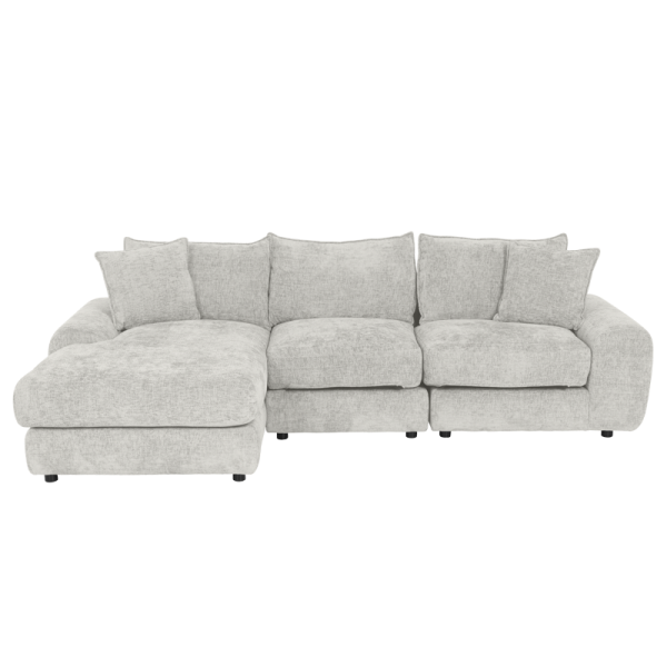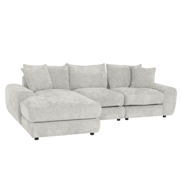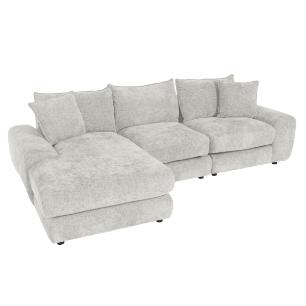 Ъгловият диван INONGO впечатлява с изчистен дизайн и елегантно заоблени форми, превръщайки се в стилен акцент за всяка дневна. Изработен от висококачествени материали, включващи мека дамаска, пенополиуретан и покет пружини, той осигурява изключителен комфорт и дълготрайност. Декоративните възглавници могат да се подредят според предпочитанията ви, създавайки идеалното място за релакс след дълъг ден, четене на любимата книга или приятни моменти с близките хора.