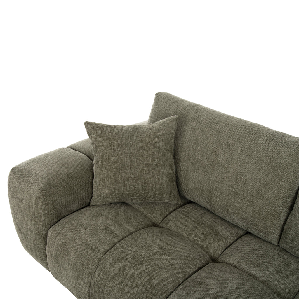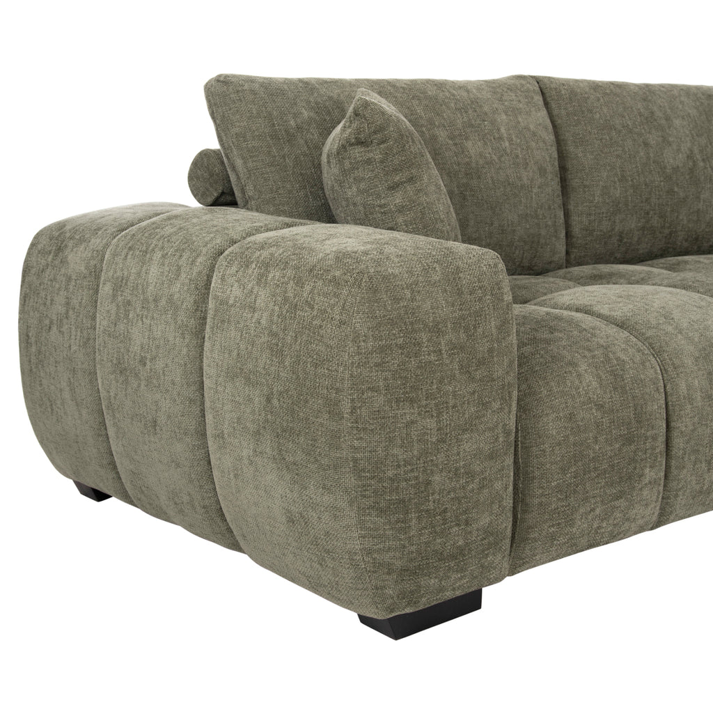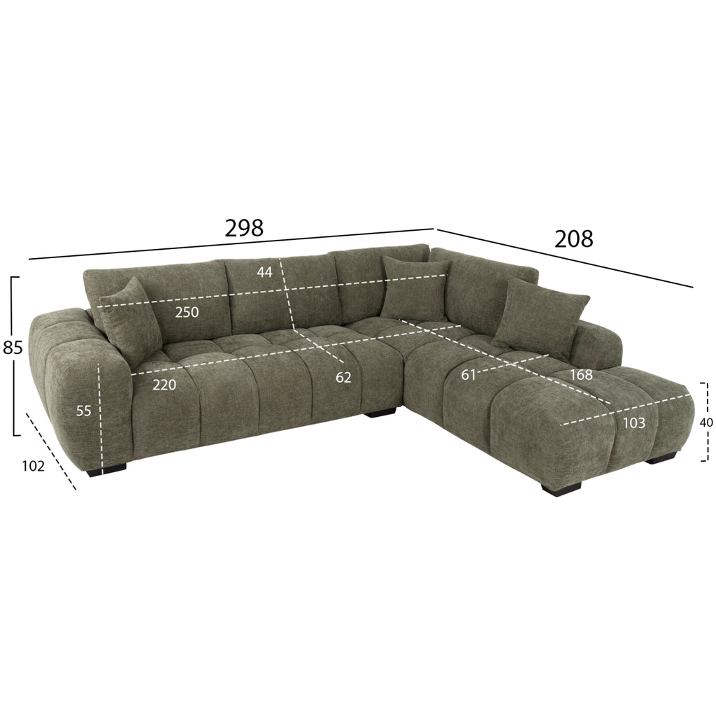 Представяме ви COVEN, прекрасен голям диван в ПРАВИЛНА ъглова конфигурация (както го гледате), тапициран с качествен плат в ЗЕЛЕН цвят. Започвайки от дизайна, диванът е много нисък в стил "престилка" и се отличава с широки ниски крака-основи в черен цвят. Подлакътниците са впечатляващо широки, а тапицерията е в капитониран стил със здрави шевове! Ъгловата част е със същата естетика и е съединена с основния диван с вертикални закачалки за панели. Облегалката е ниска и има 4 възглавници за гръб с "бонбони" (дълги цилиндрични възглавници) на гърба им за по-добра опора, както и 3 по-малки декоративни възглавници. Седалката е с пълнеж от пяна със средна твърдост, комбиниран с джобни пружини, предлагащи несравним комфорт. И разбира се, предлагаме ви този диван с 3-годишна гаранция на рамката! РАЗМЕРИ: 298x102-208x85H см. Размери на седалката: 220x62-168x61-103 см. Размери на облегалката: 250x44 см. Височина на подлакътниците: 55 см. Височина на седалката: 40 см. Спецификации на пяната: DNS 29 СТРОИТЕЛНИ МАТЕРИАЛИ: Рамката на дивана е изработена от комбинация от бор и евкалипт. БОРЪТ е мека, бяла или светложълта дървесина, която е лека на тегло с прави дървесни шарки. Устойчива е на свиване, подуване и огъване. ЕВКАЛИПТЪТ е твърда дървесина, която се счита за една от устойчивите дървесини, които са полезни и екологични. Тази дървесина, освен че е абсолютно привлекателна, има и много общи свойства с подобни твърди дървесини. Тя е много здрава и има висока плътност. Тапицерският плат е 100% полиестер. Полиестерът е общ термин за всяка тъкан, изработена от полиестерни прежди или влакна, което е синтетичен материал. Той е много издръжлив и особено устойчив на много химикали и е популярен плат, тъй като е устойчив на свиване и разтягане. Също така е устойчив на намачкване и ожулвания, а влакната, използвани за създаването му, са много здрави и леки. ПОДДРЪЖКА: Едно просто избърсване от прах и забърсване с влажна кърпа в случай на леки петна е достатъчно за почистване. За по-упорити петна се препоръчва химическо чистене. Не използвайте химически почистващи препарати. *Диванът се доставя несглобен във фабрична опаковка. ** Цветопредаването на продукта може леко да се различава от фотографското му представяне на вашия екран.