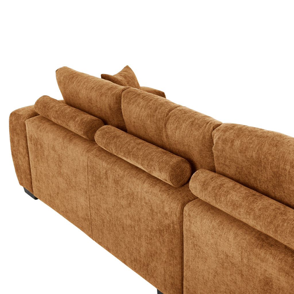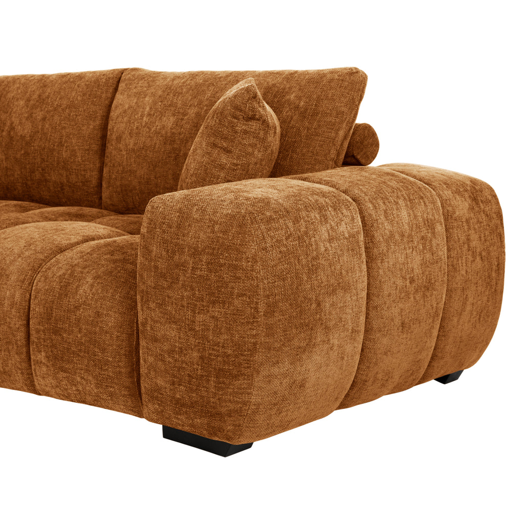 Представяме ви COVEN, прекрасен голям диван в ЛЯВА ъглова конфигурация (както го погледнете), тапициран с качествен плат в цвят ТУХЛЕНО ЧЕРВЕНО. Започвайки от дизайна, диванът е много нисък в стил "престилка" и има широки и къси крака-основи в черен цвят. Подлакътниците са впечатляващо широки, а тапицерията е в капитониран стил с дръзки шевове! Мебелта, която оформя ъгъла, има същата естетика и е свързана с основния диван чрез вертикални закачалки за панели. Облегалката е ниска и има 4 възглавници за гръб с дълги тесни цилиндрични възглавници на гърба за по-добра опора, както и 3 по-малки декоративни възглавници. Седалката е с пълнеж от пяна със средна твърдост, комбиниран с джобни пружини, предлагащи несравним комфорт. И разбира се, предлагаме този диван с 3-годишна гаранция на рамката!