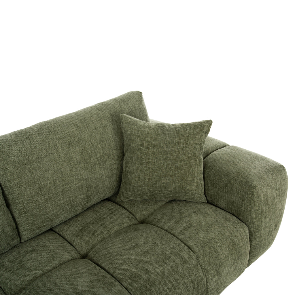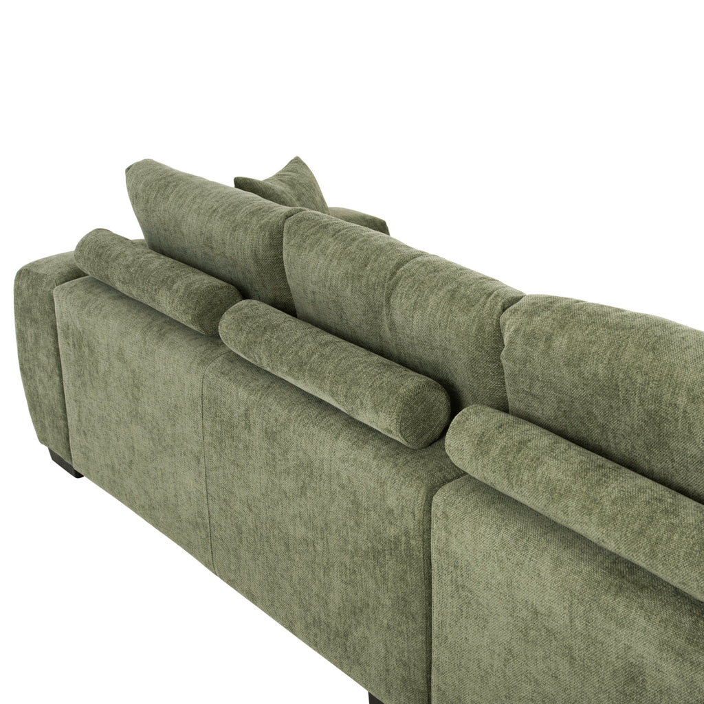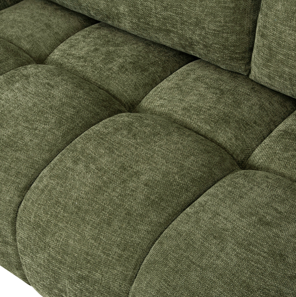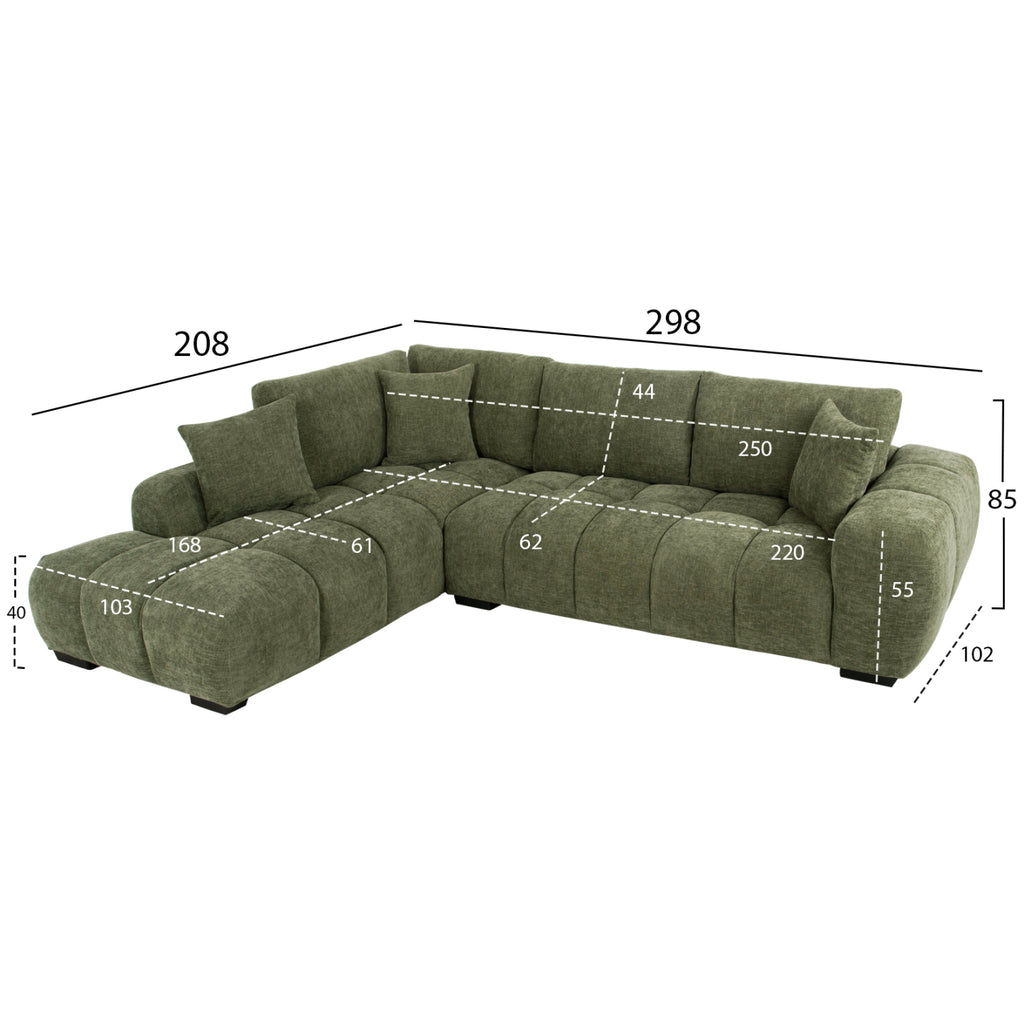 Представяме ви COVEN, прекрасен голям диван в ЛЯВА ъглова конфигурация (както го погледнете), тапициран с качествен плат в ЗЕЛЕН цвят. Започвайки от дизайна, диванът е много нисък в стил "престилка" и има широки и къси крака-основи в черен цвят. Подлакътниците са впечатляващо широки, а тапицерията е в капитониран стил с дръзки шевове! Мебелта, която оформя ъгъла, има същата естетика и е свързана с основния диван чрез вертикални закачалки за панели. Облегалката е ниска и има 4 възглавници за гръб с дълги тесни цилиндрични възглавници на гърба за по-добра опора, както и 3 по-малки декоративни възглавници. Седалката е с пълнеж от пяна със средна твърдост, комбиниран с джобни пружини, предлагащи несравним комфорт. И разбира се, предлагаме този диван с 3-годишна гаранция на рамката!