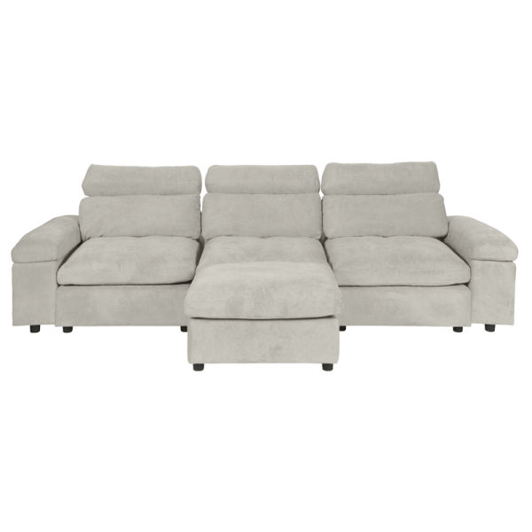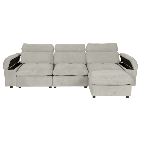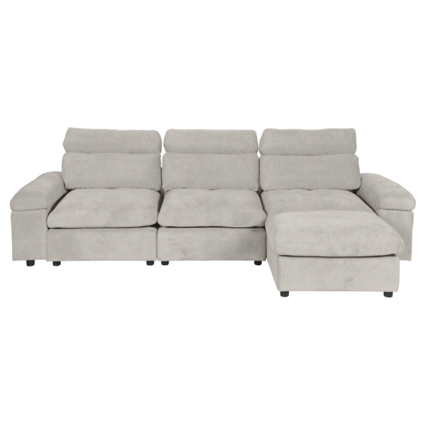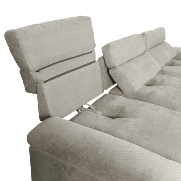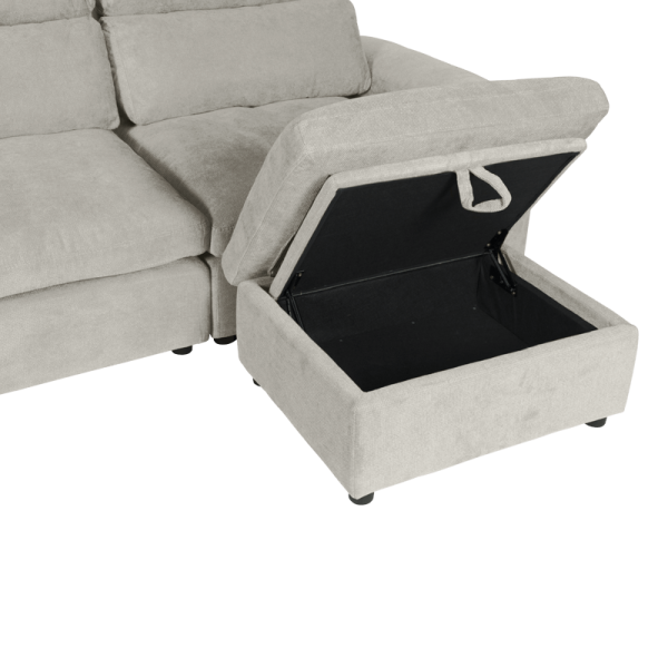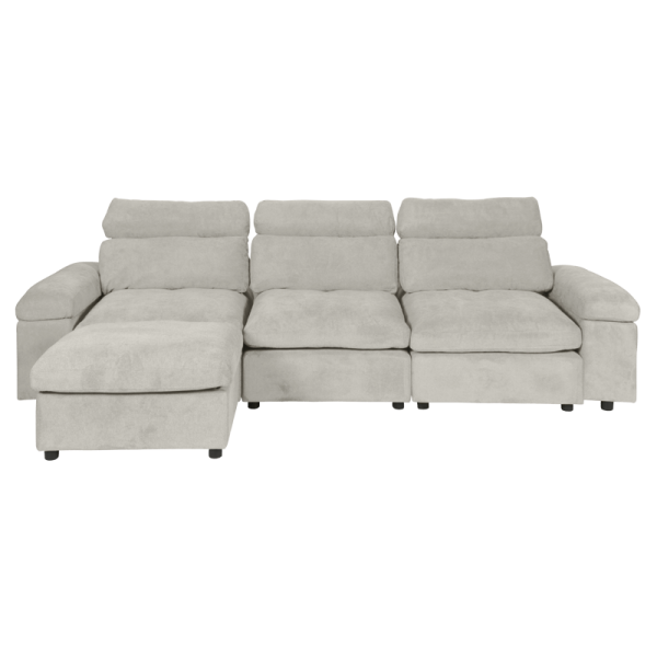 Ъглов диван POKO впечатлява с функционалност и модерен дизайн, създаден за пълен комфорт. Изработен е от висококачествена дамаска, с пълнеж от пенополиуретан и покет пружини, върху здрава конструкция от дърво и метал. И двата подлакътника разполагат с удобни отделения за съхранение, идеални за пакет чипс, книги, списания, таблет или лаптоп. Лежанката може да се позиционира вляво, в средата или вдясно, благодарение на модул тип табуретка, който се мести свободно. Под него се намира практична мини ракла за допълнително място за съхранение.