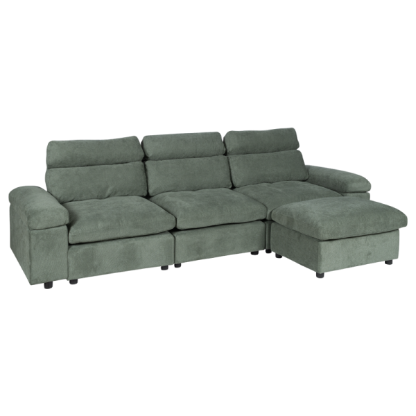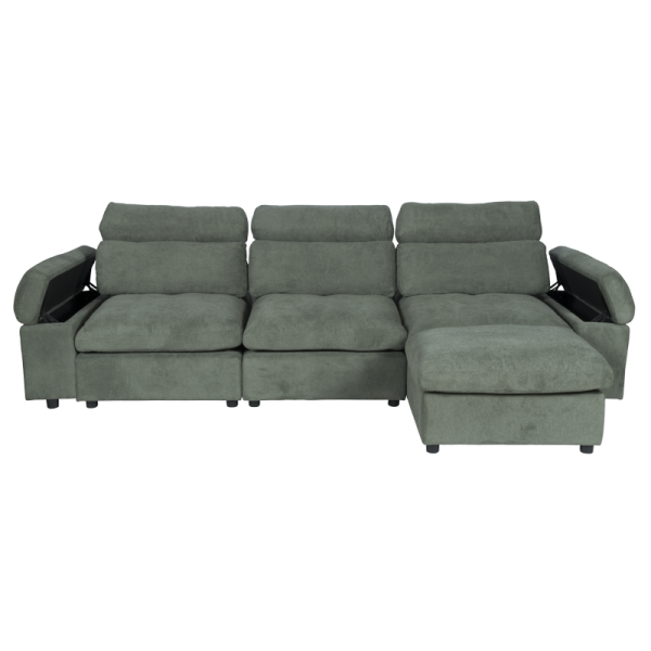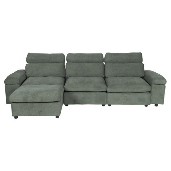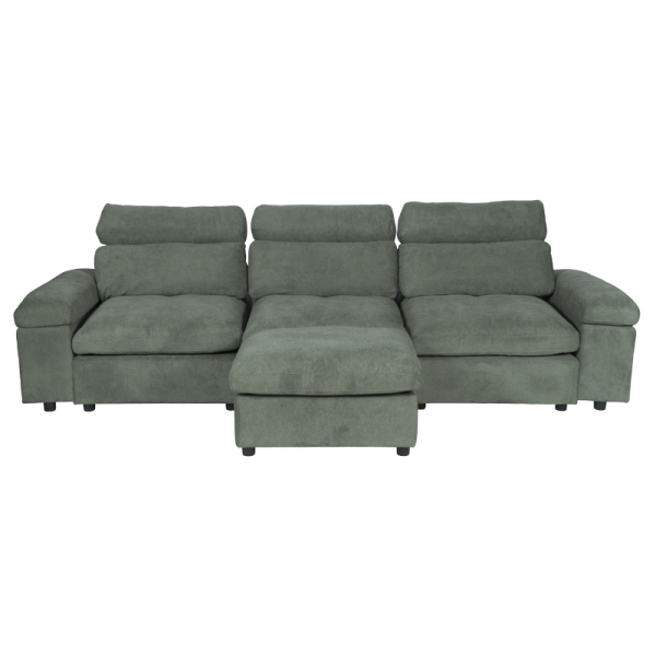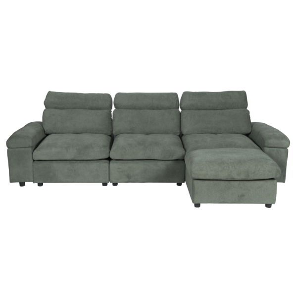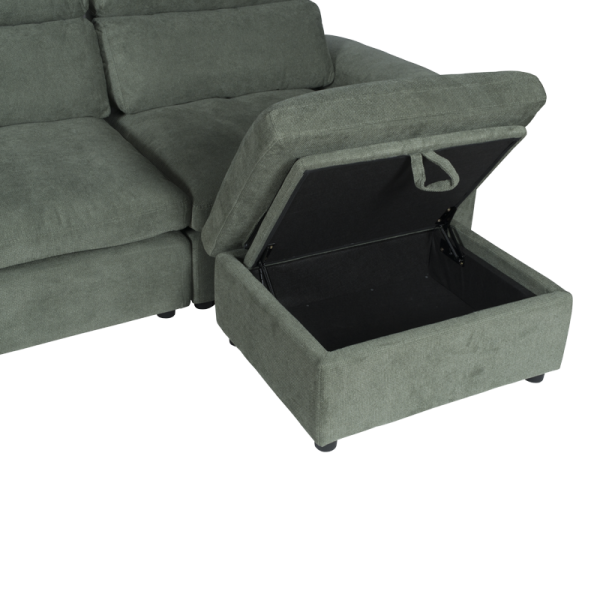 Ъглов диван POKO впечатлява с функционалност и модерен дизайн, създаден за пълен комфорт. Изработен е от висококачествена дамаска, с пълнеж от пенополиуретан и покет пружини, върху здрава конструкция от дърво и метал. И двата подлакътника разполагат с удобни отделения за съхранение, идеални за пакет чипс, книги, списания, таблет или лаптоп. Лежанката може да се позиционира вляво, в средата или вдясно, благодарение на модул тип табуретка, който се мести свободно. Под него се намира практична мини ракла за допълнително място за съхранение.