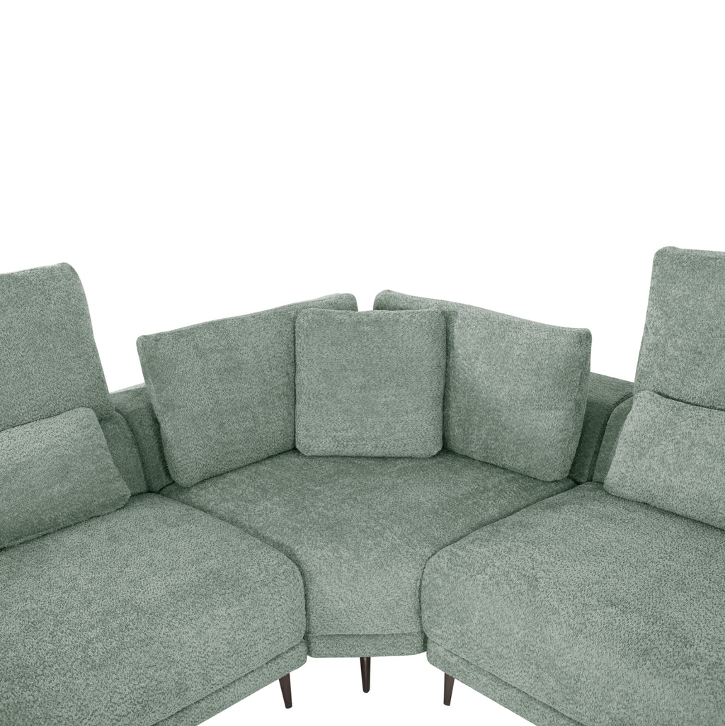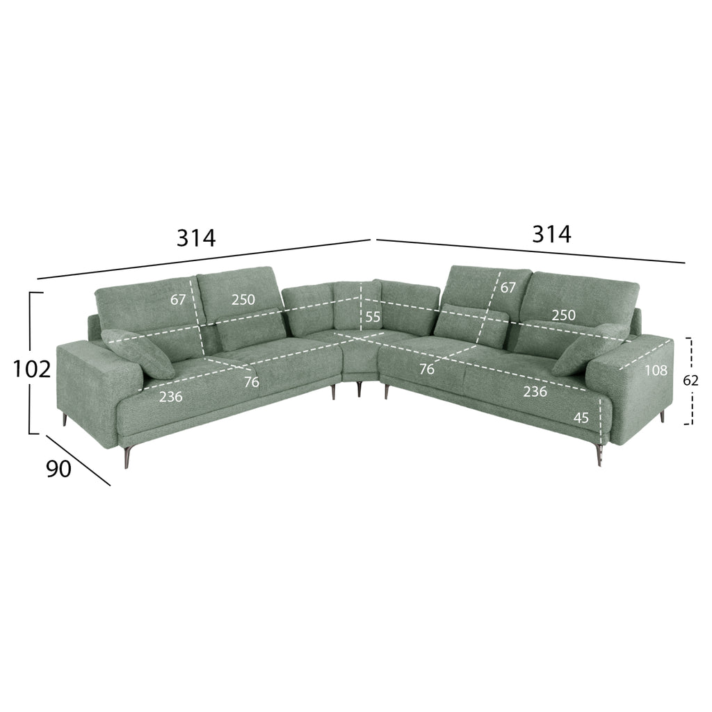 SYMMET е чудесен голям ъглов диван, състоящ се от 3 бр. Двете еднакви и еднакви симетрични страни и свързващ ги ъгъл с панелни закачалки. Подплатата е изработена от качествена релефна материя в цвят MINT, а краката са високи и метални в цвят glossy CARBON. По отношение на дизайна, диванът е с широки и удобни подлакътници, а облегалката от двете страни е къса, но има сгъваеми части, които служат като допълнителна опора за облегалните възглавници. Разполага с 4 големи облегални възглавници и 9 по-малки, което повишава комфорта, който предлага. Седалката има пълнежи от пяна със средна твърдост, комбинирани с покет пружини, които също предлагат несравним комфорт. И разбира се, предлагаме този диван с 3 години гаранция на рамката! •Всички възглавници са с цип за лесно сваляне на калъфките. РАЗМЕРИ: 314x314x90-102Y см. Дълбочина на седалката: 76 см. Дълбочина на ръкава: 108 см. Височина на ръцете: 62 см. Височина на седалката: 45 см. Височина на крака: 14 см. Спецификации на дунапрена: DNS 29 КОНСТРУКТИВНИ МАТЕРИАЛИ: Рамката на дивана е изработена от комбинация от борово и евкалиптово дърво. БОРА е мека дървесина, която е устойчива на свиване, подуване и огъване. ЕВКАЛИПТЪТ е твърда дървесина, която се счита за една от устойчивите дървесини, които са полезни и щадящи околната среда. Платът за подплата е 100% полиестер. Полиестерът е общ термин за всяка тъкан, която е направена от полиестерни прежди или влакна, което е синтетичен материал. Той е много устойчив и особено устойчив на много химикали и е популярен плат, тъй като е устойчив на свиване и разтягане. Освен това е устойчив на бръчки и ожулвания, а влакната, използвани за създаването му, са много здрави и леки. ПОДДРЪЖКА: За почистване е достатъчно просто почистване и минаване с влажна кърпа при леки петна. При по-трудни петна се препоръчва химическо чистене. Не използвайте химически почистващи препарати. *Диванът се доставя разглобен във фабрична опаковка ** Цветопредаването на продукта може леко да се различава от фотографското изображение на вашия екран.