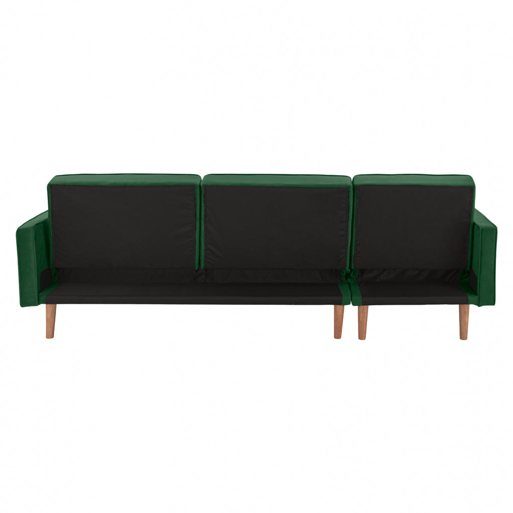 Ъглов разтегателен диван, тапициран с кадифена дамаска в нюанс кипарис 267x153x85 см. Ъглов разтегателен диван, гъвкав за използване, с обръщащ се ъгъл, който може да се регулира според изискванията на вашето собствено пространство, е умно и практично предложение за спестяване на място в офиса или дома. Диван, с голяма и удобна седалка, проектиран да излъчва комфорт и практичност. Подплатени отвън с висококачествен плюшен плат. Има подсилени дървени крака, в естествен нюанс и е особено стабилен и издръжлив. Той е идеален избор за тези от вас, които търсят нещо елегантно, функционално и качествено. Размери: 267х93-153х85 см. Размери на седалката: 72-248x57-118 см. Размери на гърба: 248х53 см. Размери на ръцете: 60х24 см. Размери на леглото: 248х112см. Височина на седалката: 40см. Височина на ръцете: 64см. Височина на крака: 20 см.