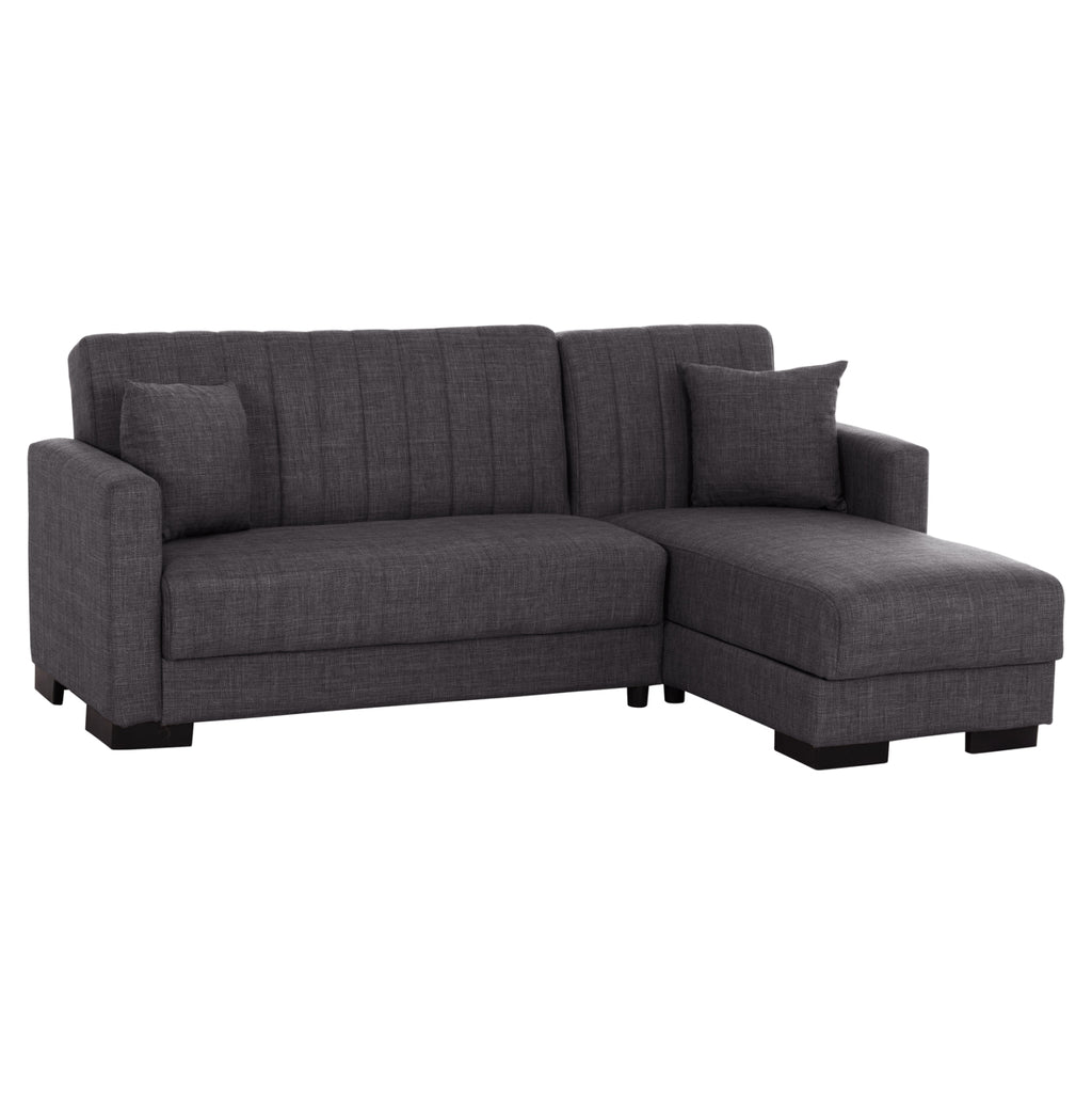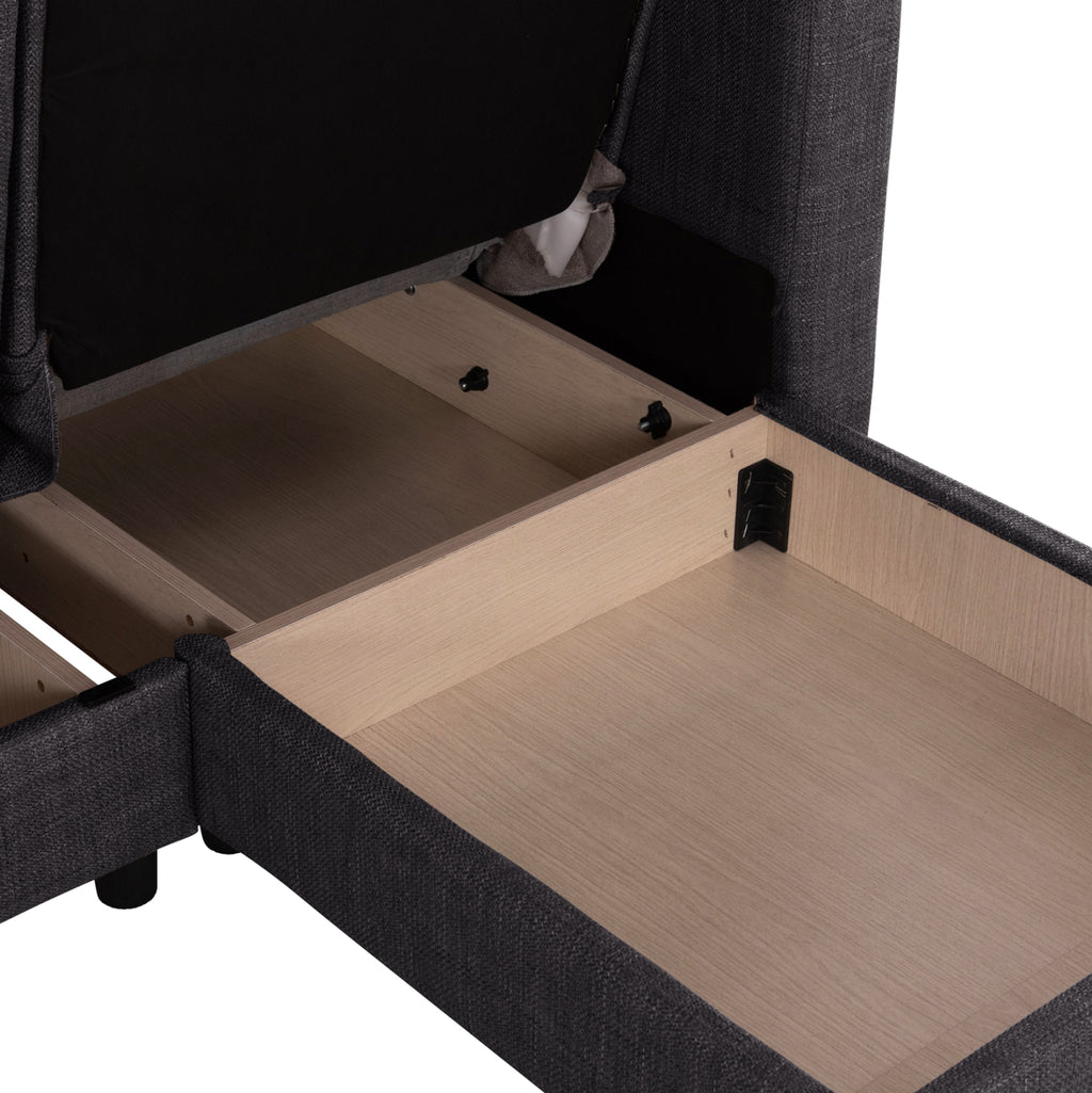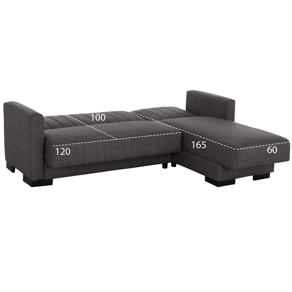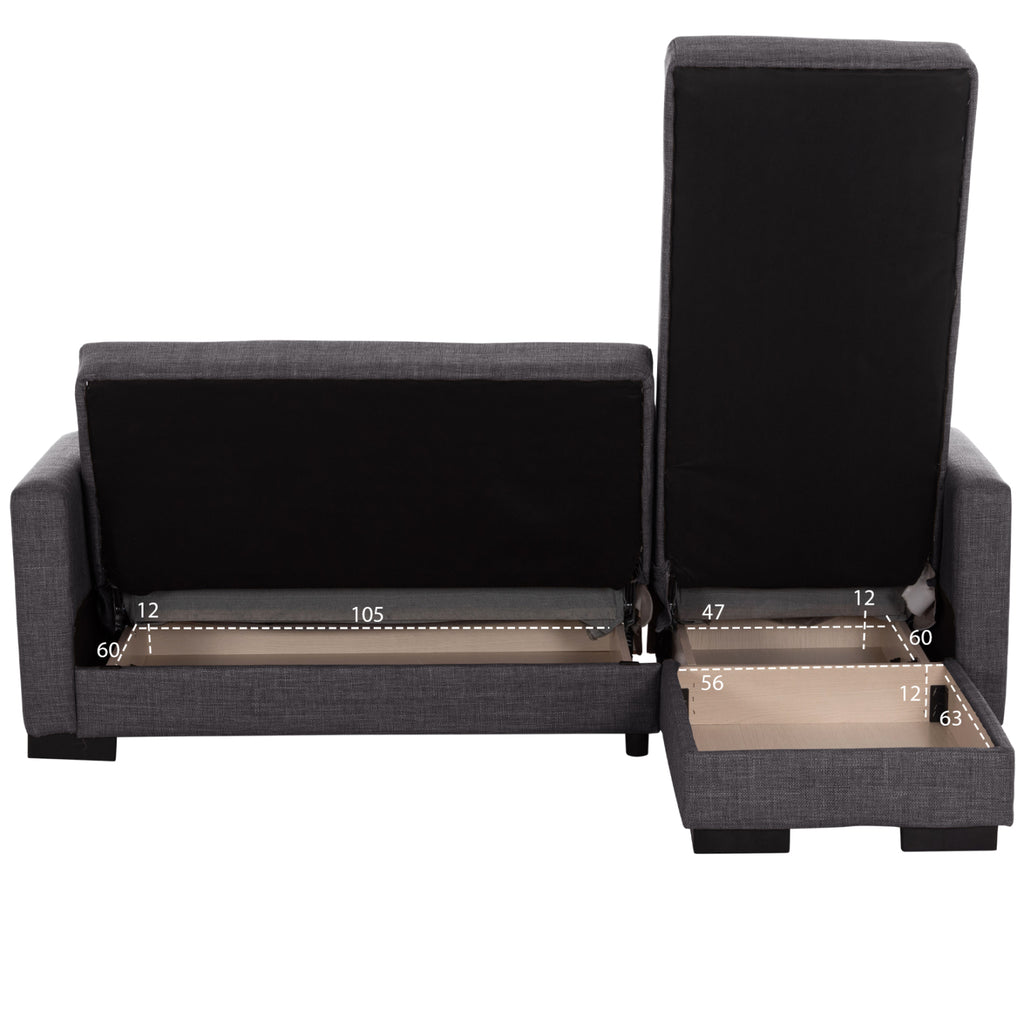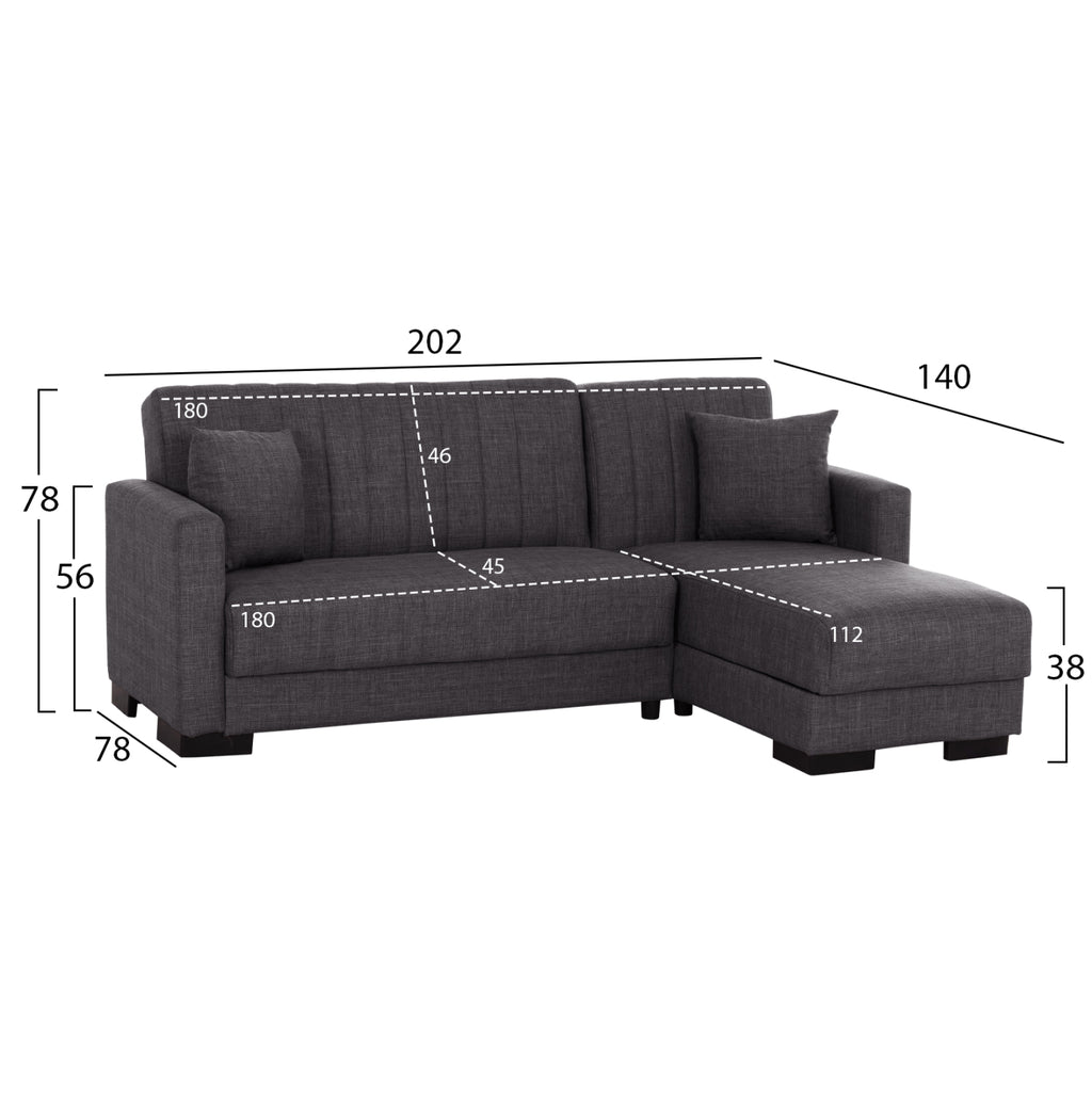 GHUFRAN е удобен и практичен ъглов диван. Цветът на тапицерията на целия диван е СИВ, както и двете декоративни възглавници. Висококачествената материя на тапицерията има вертикални шевове само на гърба, докато пълнежът на седалката и облегалката е изработен от пяна, която предлага комфорт и правилна опора, ако се използва като легло. Защото това е основната характеристика на този диван. Освен че е ъглов диван, той се превръща и в легло чрез лесен за използване механизъм "клик-клак". И тъй като диванът може да се постави както в ляв, така и в десен ъгъл, неговата полезност и функционалност надхвърлят обичайното. И сякаш това не е достатъчно, под седалките има места за съхранение, които винаги са полезни във всеки дом, независимо къде е поставен диванът. Друга страхотна характеристика на дивана е, че страната, която образува ъгъла, може да се "отреже" и да се използва като отделен фотьойл или кресло! И накрая, краката на дивана са широки и ниски, което придава здравина на цялата конструкция. РАЗМЕРИ: 202x78-140x78 см. Размери на седалката: 180x45-112 см. Размери на облегалката: 180x46 см. Височина на седалката: 38 см. Височина на подлакътниците: 56 см. Размери на леглото: 120x100 см. (основната част) 60x165 см. (ъгълът) Място за съхранение: 105x60x12 см. (в основната част) 56x63x12 см. (в ъгъла) 47x60x12 см. (в ъгъла) Височина на краката: 7 см. МАТЕРИАЛИ ЗА КОНСТРУКЦИЯ: Рамката на дивана е дървена, а механизмът на леглото е метален за голяма издръжливост при продължителна употреба. Леглото е тапицирано с висококачествена материя, а пълнежите както на седалката, така и на облегалката са изработени от средно твърда пяна, която предлага комфорт и качествен сън, когато се превърне в легло. Краката са ниски и са изработени от подсилен полиетилен, за отлична устойчивост на тегло и влага. ПОДДРЪЖКА: Висококачествените материали за конструкция на дивана го правят лесен за употреба и, разбира се, лесен за поддръжка. Редовно почистване с влажна кърпа ще придаде на дивана вид на нов. ПРЕДИМСТВА: • Отлични качествени материали • Удобна седалка • Преобразуване в легло с лесен механизъм • Ъглова седалка с възможност за обръщане • Здрави крака • Място за съхранение под седалката • Декоративни възглавници • Удобни размери за транспорт, тъй като е сглобен от 3 части. Основна седалка, ъглова седалка и подлакътници.