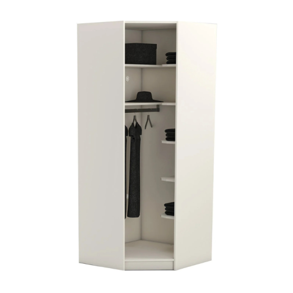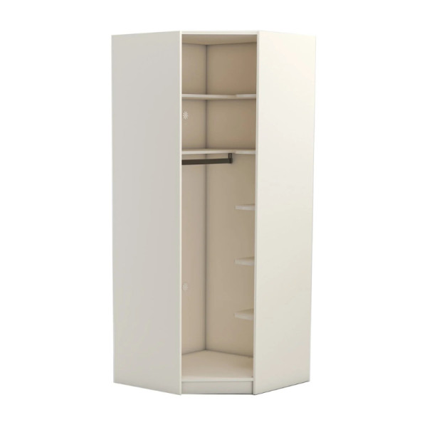 Съчетание на елегантност и практичност, ъгловият гардероб YORK впечатлява със своя модерен дизайн и прецизна изработка. Изработен от висококачествено ПДЧ с дебелина 18 мм в елегантен кремав цвят, той предлага стил и функционалност в едно. Вътрешното разпределение включва 7 рафта и 1 лост за закачалки – интелигентно организирано пространство, създадено за комфорт и удобство. За допълнителен комфорт гардеробът разполага с вентилационни отвори на гърба. Предлага се без врата, която може да бъде закупена допълнително като опция. Може да се използва самостоятелно или като модул в комбинация с другите модели от серията YORK.