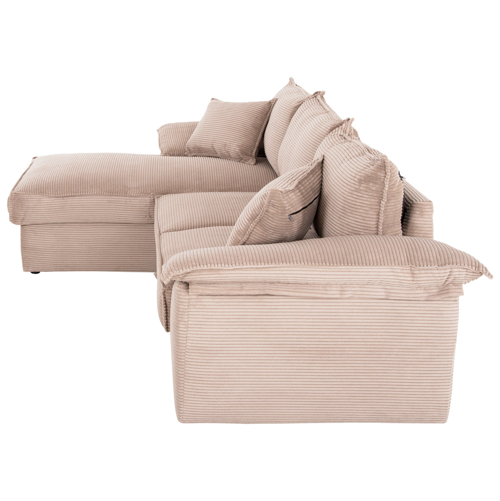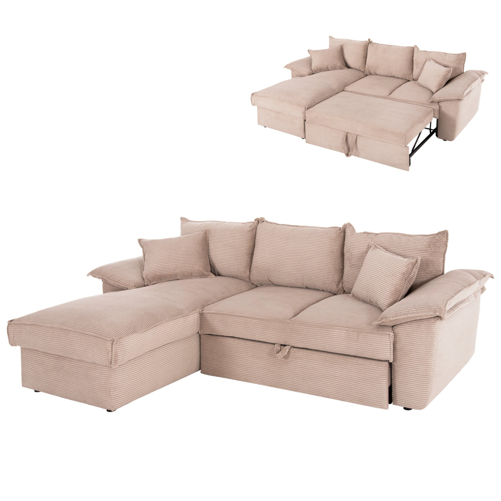 ALDO е нов 3-местен диван в ЛЯВА ъглова конфигурация (както го гледате). Тапициран е с красива бежева дамаска на райета, а ъгловата част се свързва с основен диван с вертикални закачалки. Разполага с 3 облегалки, а седалката е с пълнеж от пяна със средна твърдост, комбиниран с хоризонтални (зигзагообразни) пружини, предлагащи несравним комфорт. Характеристиката обаче, която отличава този прекрасен диван, е, че с две прости движения той се превръща в двойно легло, предлага качествено решение, където и когато е необходимо! Просто издърпвайте допълнителната част под основната седалка на дивана с поддръжка от плат и я повдигате. И все пак това не е достатъчно, точно под седалката на ъгловия диван има място за съхранение, което включва практичност на този уникален мебел! И разбира се, предлагаме този диван с 3-годишна гаранция на рамката! Все още мислите за това?
