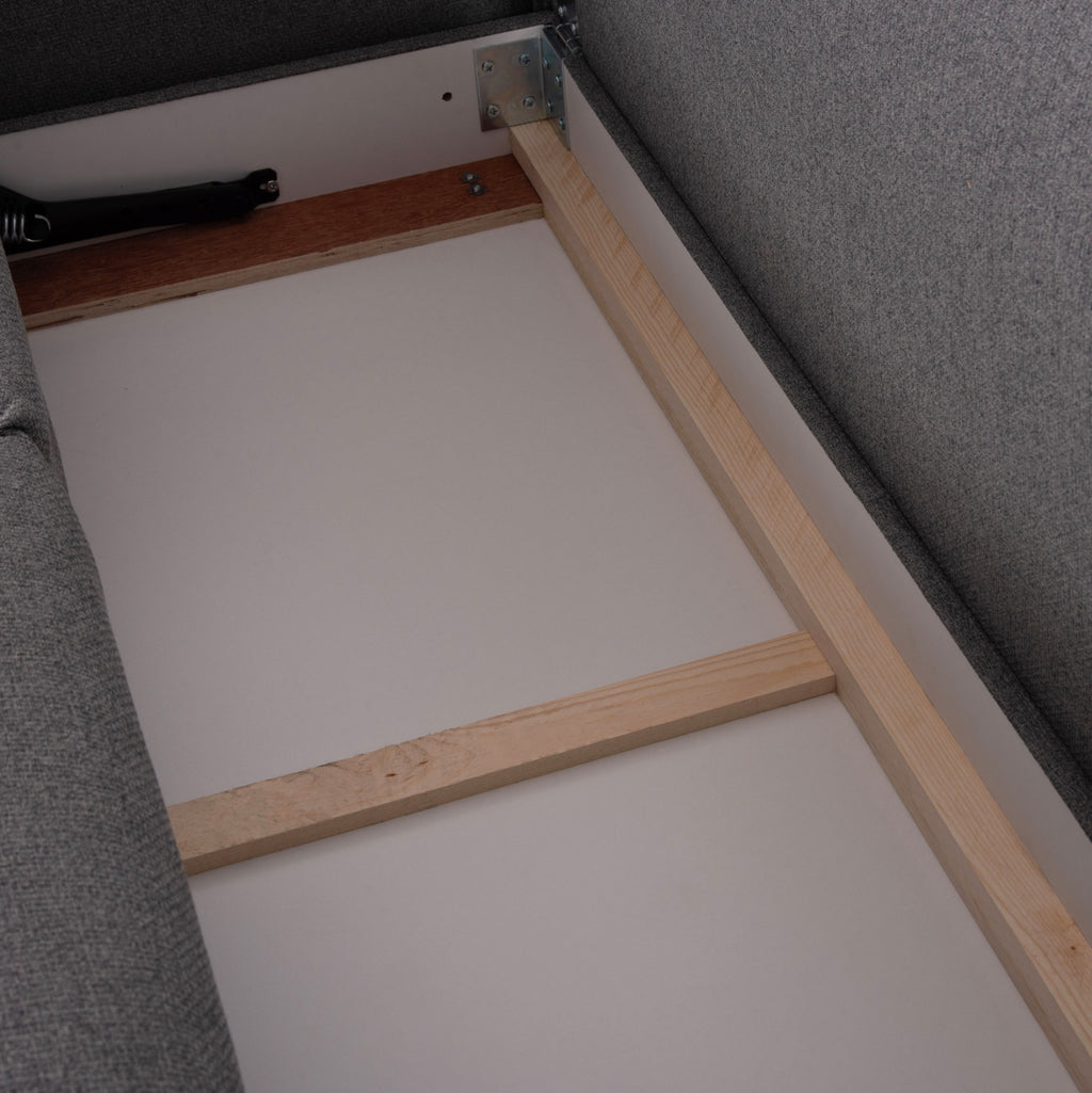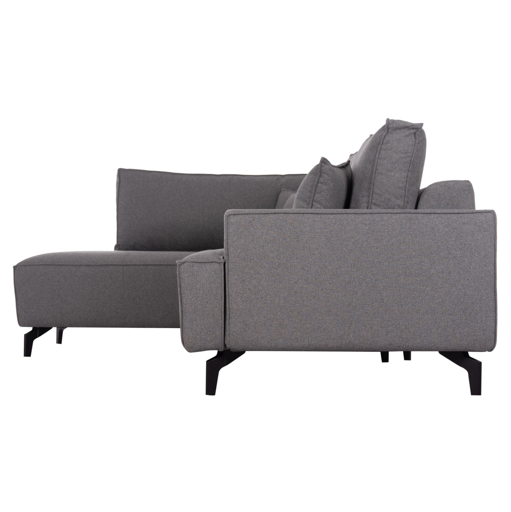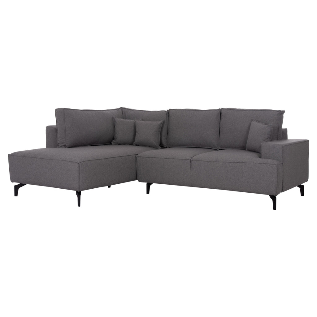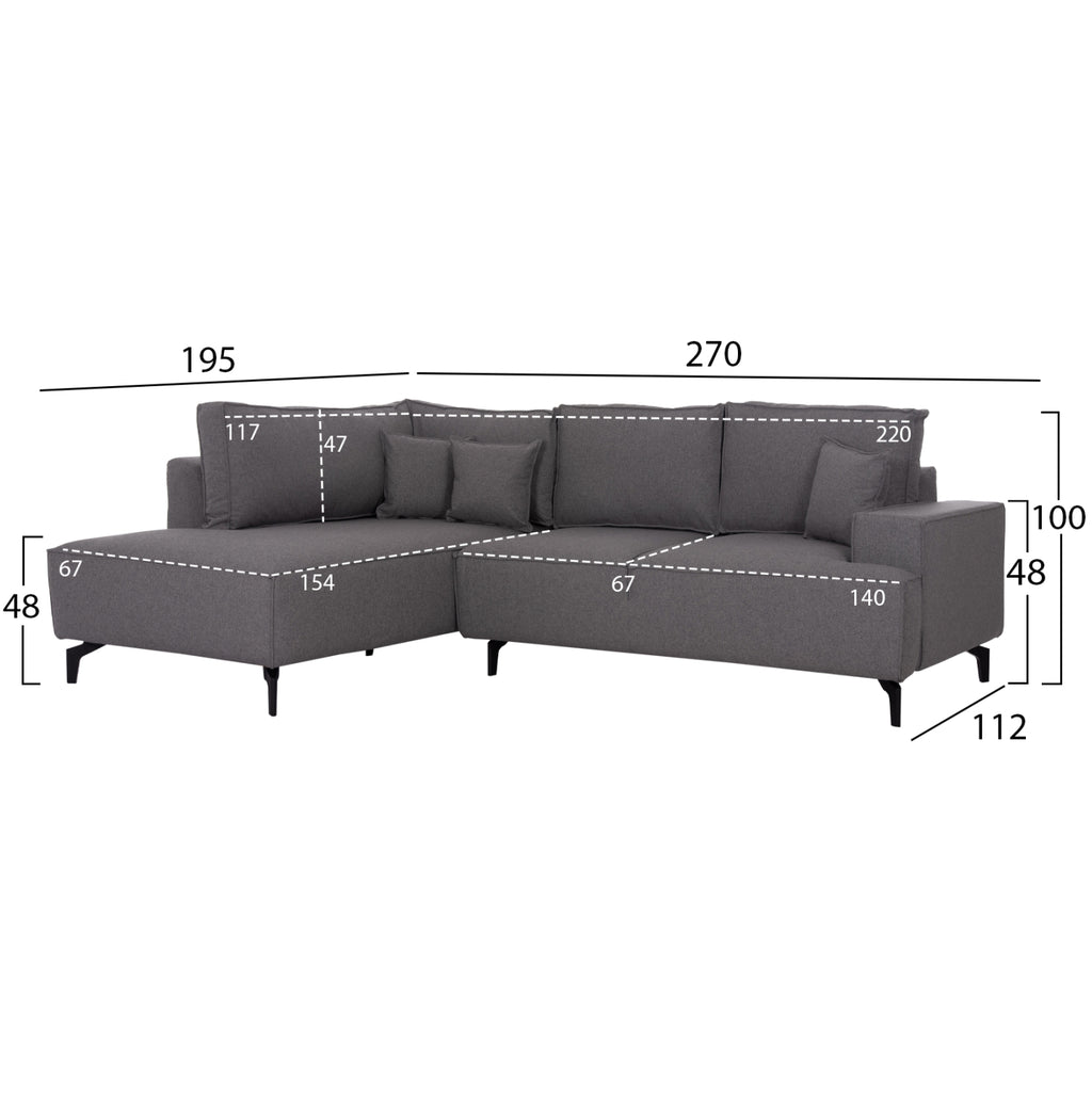 SAFFIRA е красив и практичен ъглов диван-легло (ЛЯВ ЪГЪЛ). Тапицерията му е изработена от висококачествен СИВ плат, а краката са от висок подсилен полиетилен в ЧЕРЕН цвят. Разполага с 4 големи възглавници за облегалка и 3 по-малки декоративни. Леглото се оформя чрез издърпване на седалката на основния диван, като едновременно с това се "хвърля" късата облегалка, като същевременно има и допълнителен крак за по-голяма здравина. Така се създава малко, но практично пространство за съхранение. Накрая, подлакътникът от лявата страна е широк и удобен, допълвайки по най-добрия начин несравнимата практичност на този прекрасен диван. РАЗМЕРИ: 270x112-195x100H см. Размери на седалката: 140-205x67-154 см. Размери на облегалката: 220-117x47 см. Височина на подлакътниците: 77 см. Височина на седалката: 48 см. Височина на краката: 17 см. Размери на леглото: 140x150 см. Размери на пространството за съхранение: 60x140x10H см. НАКРАТКО: • Отлично качество на строителните материали (пяна HR 35) • Седалките са с комбинация от джобни пружини и зигзагообразни пружини • Преобразуване в легло • Малко пространство за съхранение • Широк подлакътник • Задоволен размер • Високи крака * Диванът се доставя несглобен във фабрична опаковка ** Цветопредаването на продукта може леко да се различава от фотографското му изображение на вашия екран.