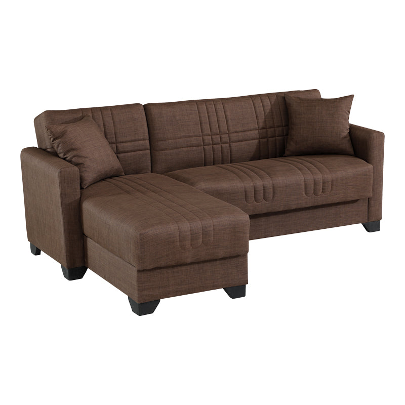 • Тапицирана с висококачествена, изключително издръжлива материя в кафяв цвят.