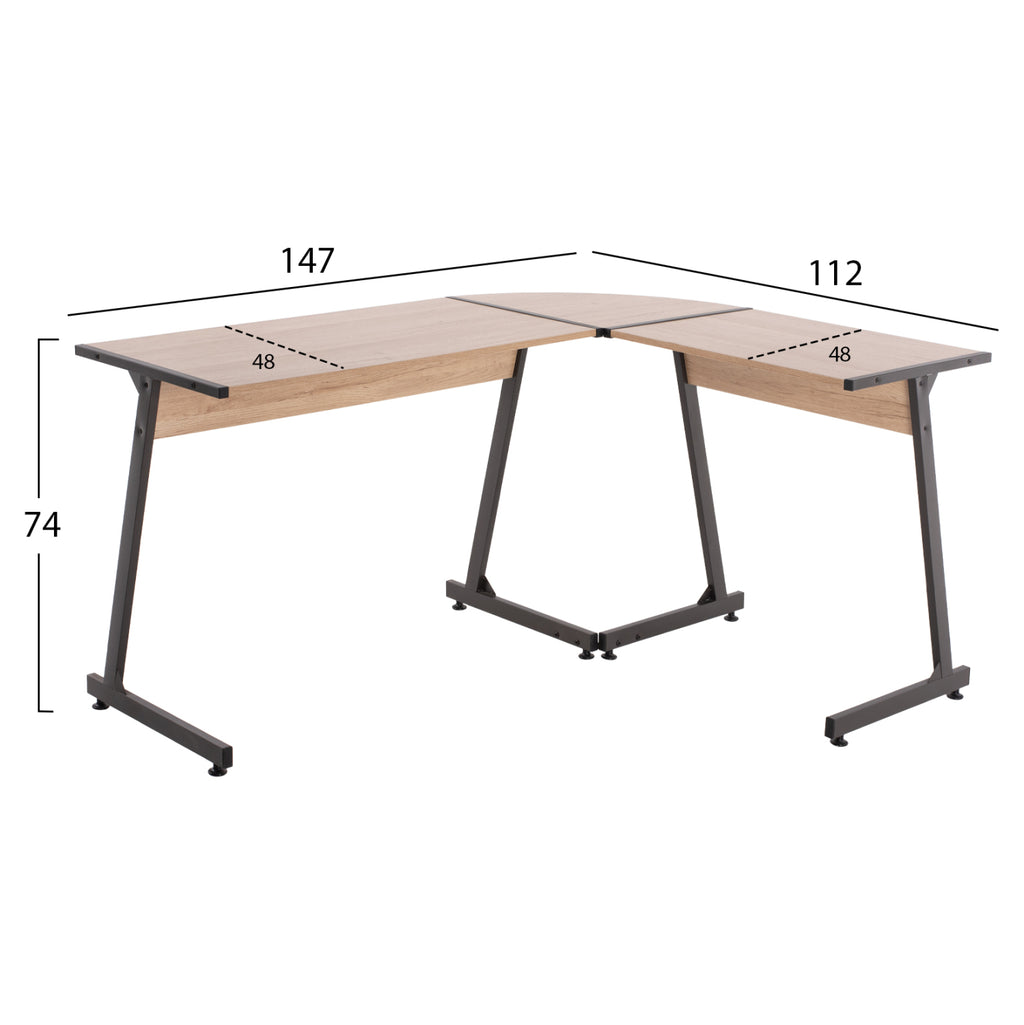 Ъглово бюро ΜM9319 е качествено и практично предложение за всяко пространство. Тъмносивата семпла рамка с естествен цвят ДЪБ на повърхността е комбинация, която наистина прави мебелите да се открояват в стаята. Той няма рафтове или чекмеджета, но голямото му предимство е, че можете да монтирате полукръглия ъгъл от лявата или от дясната страна, в зависимост от вашето пространство. РАЗМЕРИ: 147X112X74H см. Размери на голяма повърхност: 147x48 cm. Малки размери на повърхността: 112x48 cm. Спецификации на метала: 20x20x0.6mm---40x20x0.6mm Дебелина на MDF: 1.5cm. КОНСТРУКТИВНИ МАТЕРИАЛИ: Рамката на бюрото е метална. Повърхността е изработена от MDF. МДФ (влакна със средна плътност) е съвременен материал за масово потребление и основните му характеристики са, че абсорбира минимална влага, има хомогенност в масата си, задоволителни механични свойства, отлична гладкост и много възможности за обработка. ПОДДРЪЖКА: Можете да забършете всички повърхности с влажна кърпа и това е достатъчно, за да изглежда бюрото ви отново като ново. За упорити петна можете да използвате мек почистващ препарат. ПРЕДИМСТВА: •Стабилна конструкция •Има регулатори в долната част на краката за леко регулиране на височината •Качествени материали •Идеален за различни пространства •Естетически красива конструкция •Лесен монтаж (препоръчваме монтаж от 2 човека) *Продуктът се доставя несглобен във фабрична опаковка с подробна инструкция за монтаж