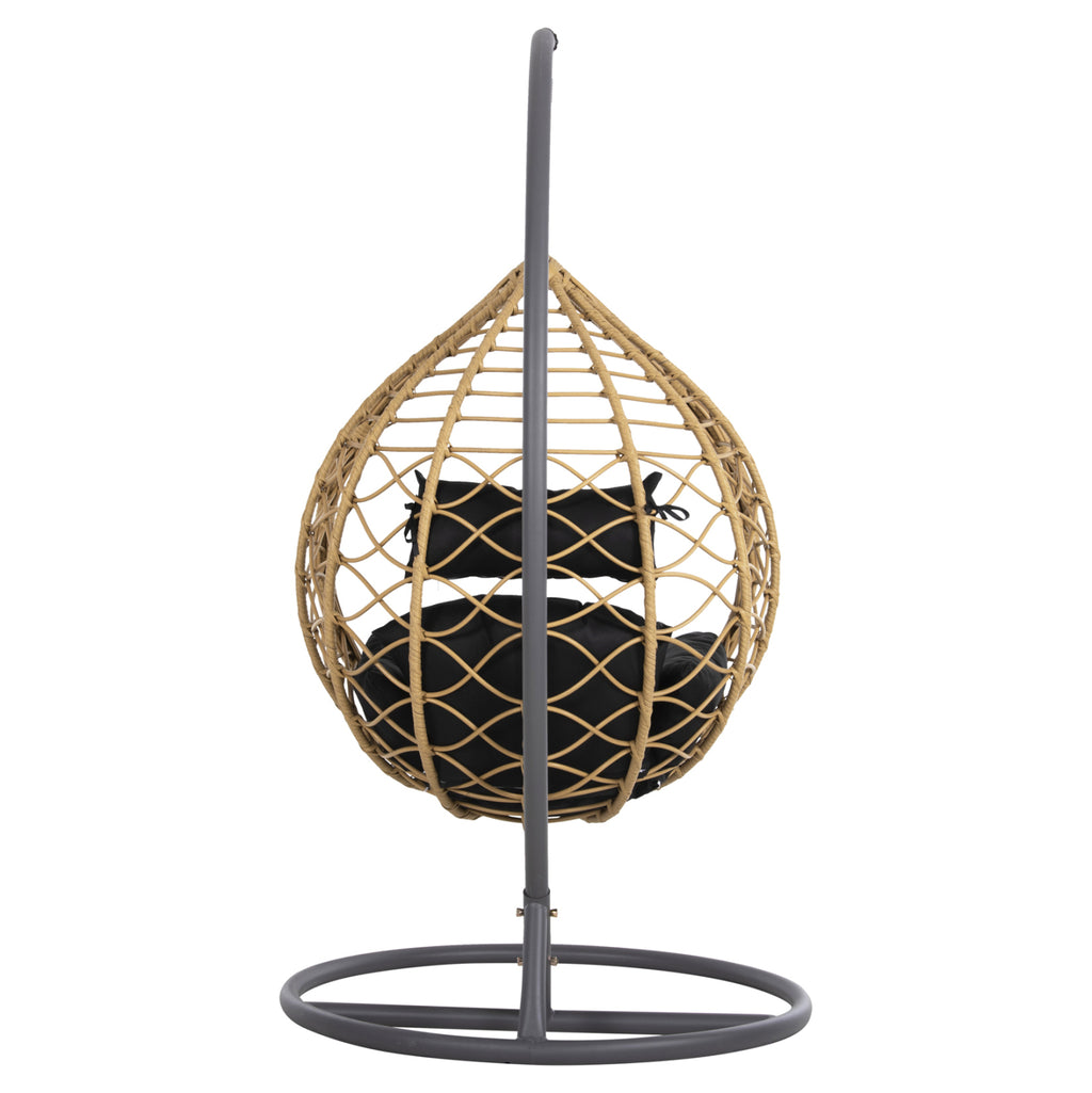 Единичното висящо гнездо GRACIE ще ви даде това, което търсите. През цялото време хамаците са олицетворение на безгрижието и релаксацията. Предлагаме Ви това висящо гнездо, изработено от синтетичен ратан в БЕЖОВ цвят с ЧЕРНИ възглавнички! Висящата рамка на хамака-гнездо е изработена от СИВ подсилен метал и хамакът се окачва с верига от точка за окачване. Това, което го отличава обаче, е, че има и предно монтирано разширение/поставка за крака, което увеличава пространството за краката, така че можете да се облегнете, когато пожелаете. Това гнездо може да се използва както за домашна, така и за професионална употреба. РАЗМЕРИ: Размери на основата: Φ104x200H см. Размери на гнездото: 93x115x72-142H cm. Размери на седалката: 44x42-84 см. Размери на гърба: 70х38-54см. Височина на седалката: 50см. *Възглавниците имат връв за връзване на рамката където ви е удобно. МАТЕРИАЛИ НА КОНСТРУКЦИЯТА: Основата на хамака е изработена от подсилен метал с електростатично боядисване. Информация: Електростатичното боядисване е процес на сухо покритие, използван като метално покритие. Електростатичното боядисване е нанасяне на сух прах чрез електростатичен процес, който след това се „свързва“ към метала чрез топлина. Известен е с високо качество на облицовките както по отношение на функционалност, така и на цялостен външен вид. Синтетичният ратан е синтетичен материал, изработен от PVC, т.е. висококачествени изкуствени влакна. Това дава отлична здравина и издръжливост при екстремни горещини или студени условия, като в същото време е обогатен с UV стабилизатор за допълнителна защита от слънчевите лъчи. ПОДДРЪЖКА: Хамакът се нуждае само от прах и при необходимост почистване с влажна кърпа. Не използвайте химически почистващи препарати. КАКВО НИ ХАРЕСВА: •Здрава конструкция •Зашеметяващ дизайн •Разполага с поставка за крака/удължител *Гнездото се доставя несглобено ** Цветопредаването на продукта може леко да се различава от фотографското изображение на вашия екран.
