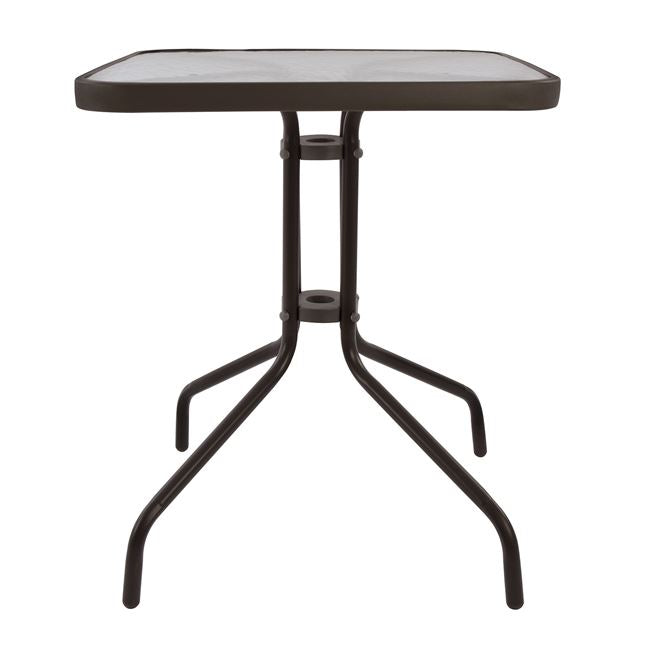 Външна метална маса с вградено безопасно стъкло (обезопасена). Размери: 60х60х72см. Метална рамка: Φ25x0.8mm дебелина Цвят: Кафяв Наименование: FIGO Продуктът се доставя разглобен (несглобен). Лесен за сглобяване. В комплекта са включени всички необходими компоненти за сглобяването му.