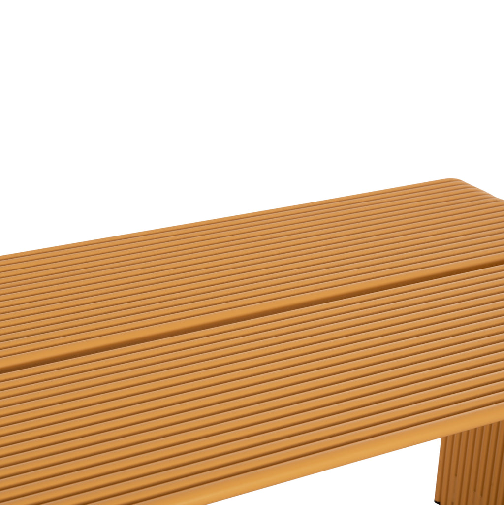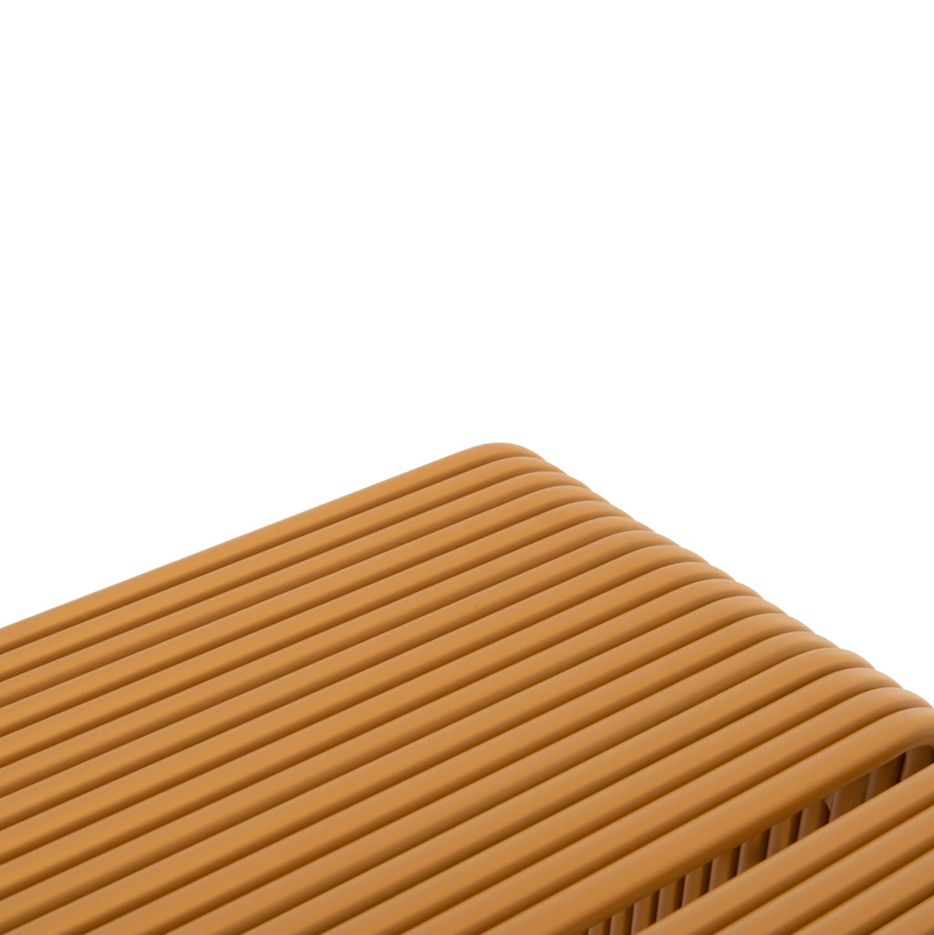 INTREPID е много специална трапезна маса, изработена изцяло от алуминиеви тръби в красив цвят MUSTARD, с пластмасови капачки в долната част на краката. Уникално и модерно предложение за външно пространство! РАЗМЕРИ: 120x70x70.5H см. Разстояние между краката: 121-117x70 см. КОНСТРУКТИВНИ МАТЕРИАЛИ: Алуминият е "зелен" материал, който може да се рециклира неограничено дълго време, като запазва характеристиките си без влошаване на качеството. По своята същност алуминият е устойчив на корозия. Информация: Електростатичното боядисване е процес на сухо покритие, използван като метално покритие. ПОДДРЪЖКА: Почиства се лесно с влажна кърпа. Не използвайте химически почистващи препарати. ** Цветопредаването на продукта може леко да се различава от неговото фотографско представяне на вашия екран.