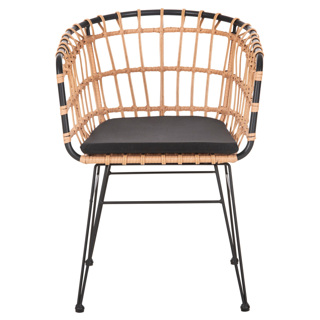 Кресло ALLEGRA е модерно, удобно и стабилно. Неговият дизайн с полукръгъл гръб, който прегръща тялото със синтетична ракита. Ратан в БЕЖОВ цвят, ще надгради естетически пространството, където ще го поставите и ще грабва окото. Също така възглавницата е в черен нюанс като долната част на рамката и е завързана за фотьойла с въжета, като идеално допълва фотьойла. РАЗМЕРИ: 58х61х81 см. Размери на седалката: 42х52 см. Размери на гърба: 44х38см. Височина на ръцете: 75 см. Височина на седалката: 49 см. Височина на крака: 42 см. Разстояние между краката: 49х49 см. Дебелина на възглавницата: 3см. изработен от полиестерен материал МАТЕРИАЛИ ЗА ИЗРАБОТКА: Рамката на фотьойла е изработена от масивен метал, боядисан с електростатична боя. Информация: Електростатичното боядисване е процес на сухо покритие, използван като метално покритие. Електростатичното боядисване е нанасяне на сух прах чрез електростатичен процес, който след това се „свързва“ към метала чрез топлина. Краката в долната част имат пластмасови капачки за защита на пода. Седалката и подлакътниците на фотьойла са изработени от синтетичен ратан в плетка. Повечето градински мебели и външни мебели като цяло използват PVC синтетичен ратан, т.е. висококачествени изкуствени влакна. Това придава на конструкцията изключителна здравина и издръжливост при екстремни горещини или студени условия. ПОДДРЪЖКА: Фотьойлът е лесен за поддръжка. Освен редовното почистване от прах, можете да го избършете с влажна кърпа. НЕ използваме препарати, белина и лакове. Ако все пак се налага използването на перилен препарат, тогава използваме мек сапун с топла вода. НЕ използваме машина под налягане или маркуч с налягане, защото това ще повреди влакната. *Продуктът се доставя във фабрична опаковка в несглобен вид. **Точното цветопредаване на продукта може леко да се различава от действителния продукт поради различни настройки на монитора.