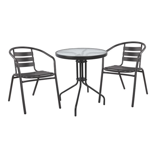 Маса от метална конструкция в сив нюанс със стъклена повърхност.
