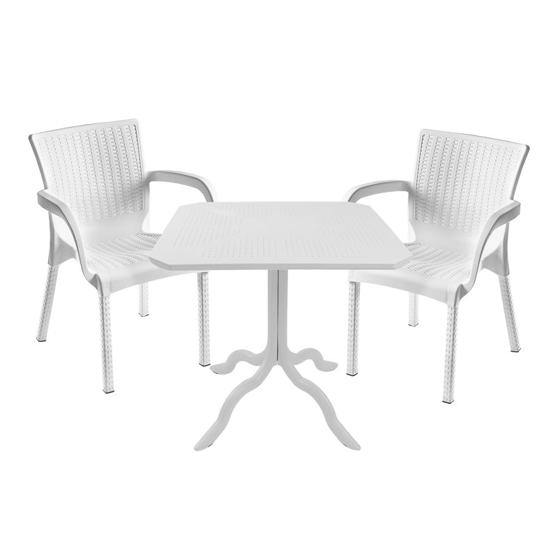 Градинска трапезна маса Groovy-Festive комплект от 3 PP бяла 80x80x74.5cm
