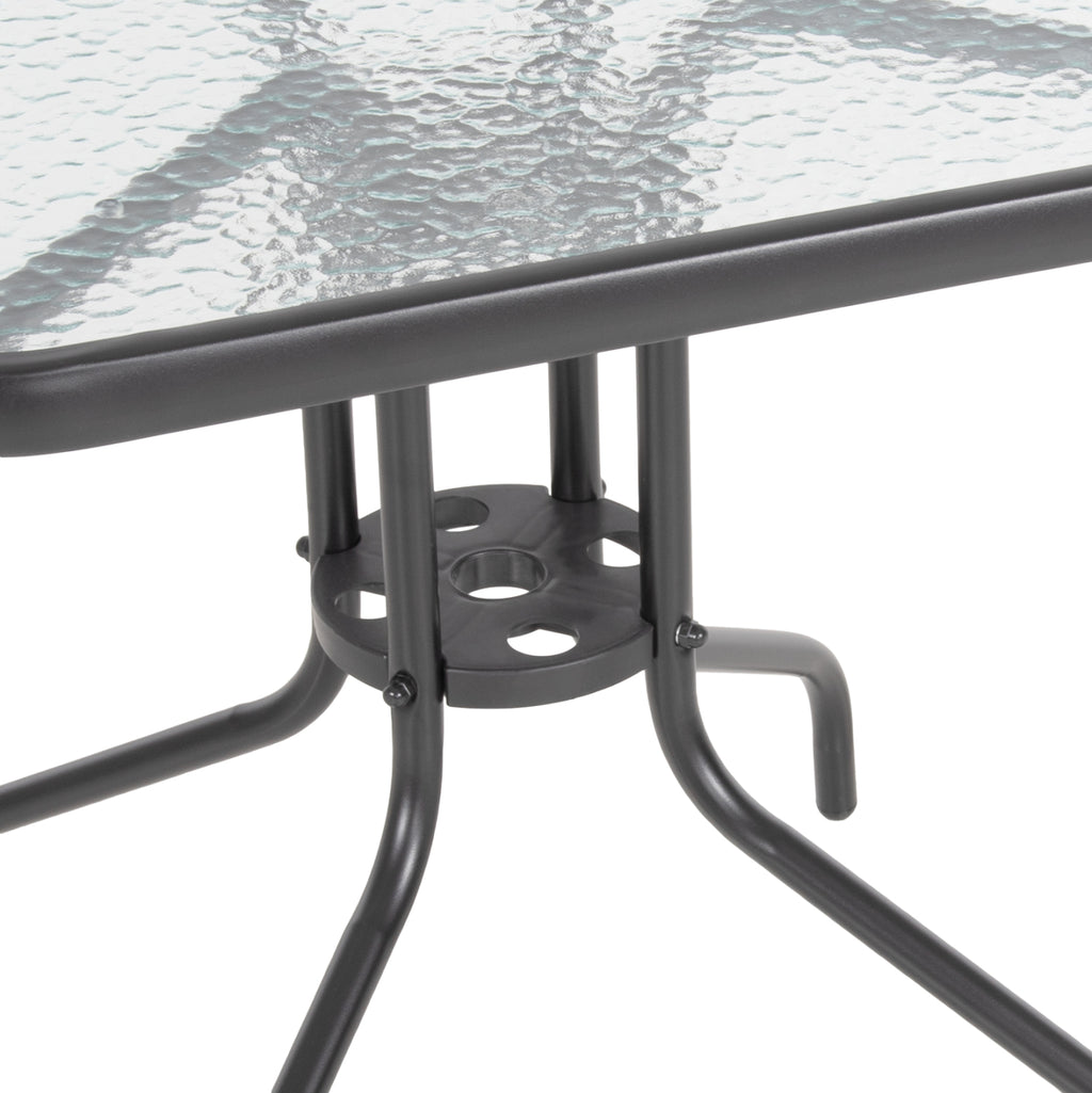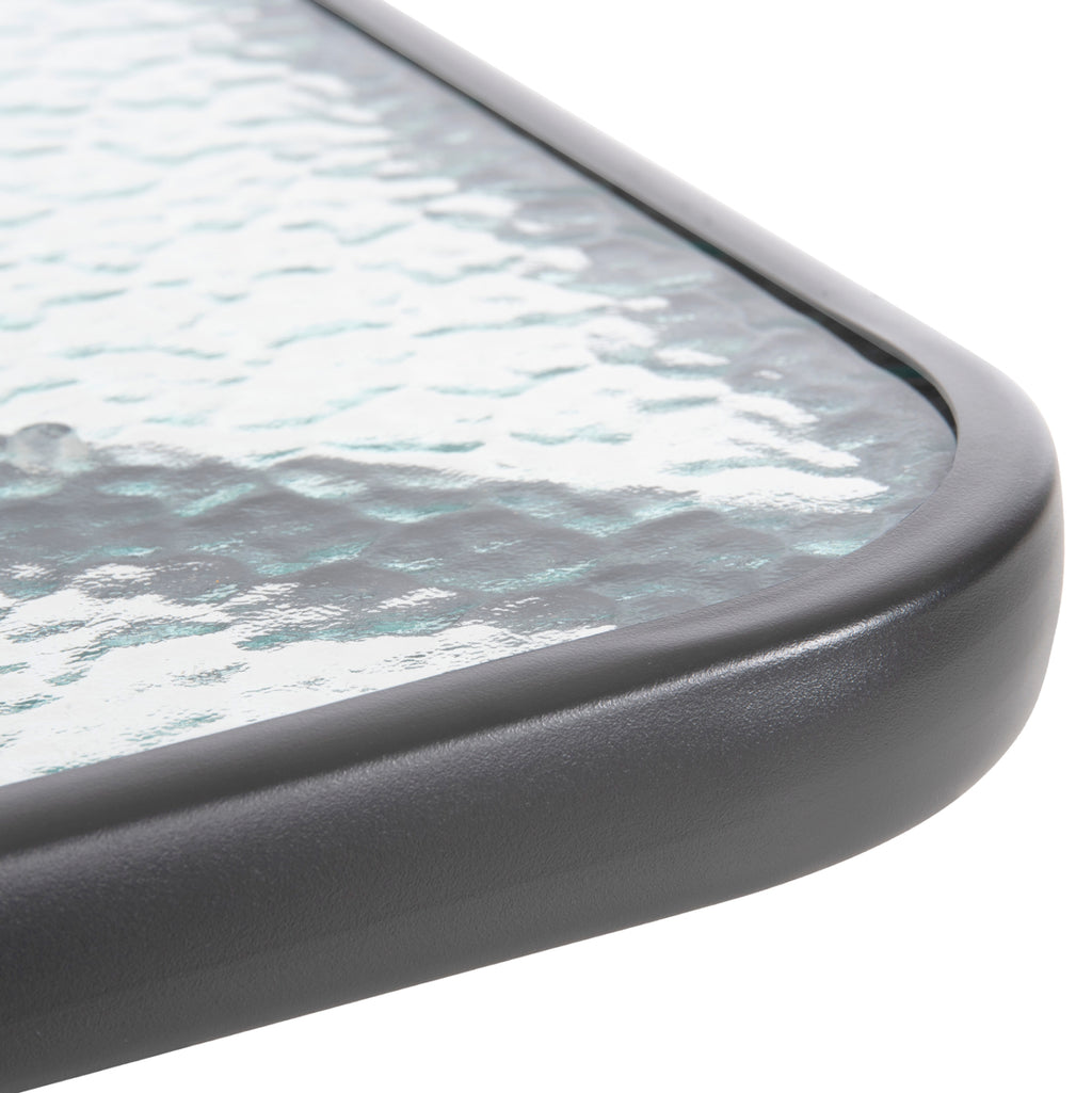 Външна метална маса в цвят антрацит-сив, с вградено защитно стъкло.