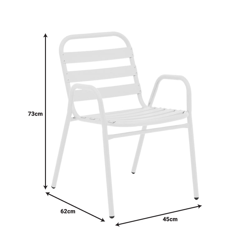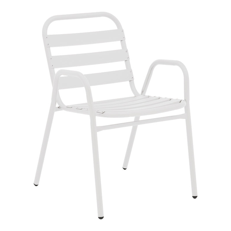 • Здрава рамка от висококачествен метал, устойчив на износване и време. Седалката и облегалката са изработени от алуминиеви ламели, осигуряващи издръжливост и стабилност, като същевременно добавят лекота и модерен щрих към дизайна.