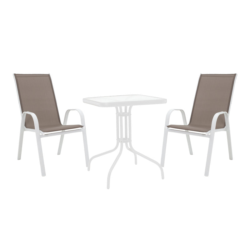 • Textilene е изключително издръжлива материя, устойчива на слънчева светлина и влага, като същевременно позволява на кожата да "диша", осигурявайки комфорт при седене.
