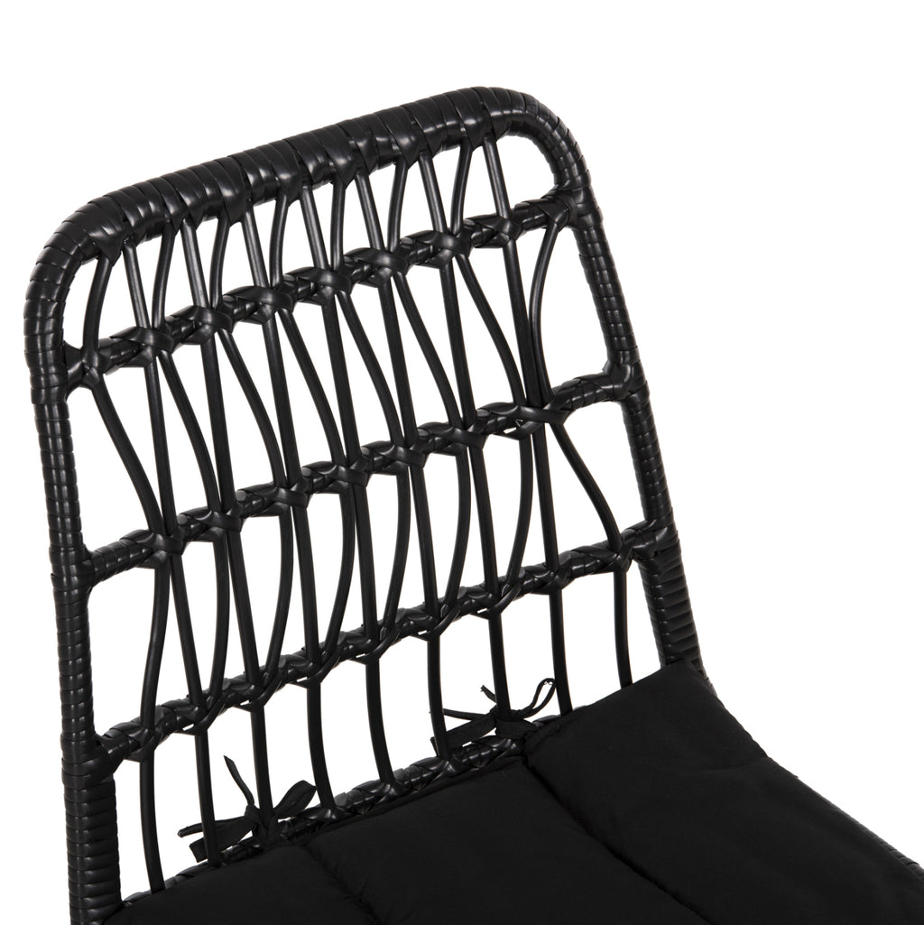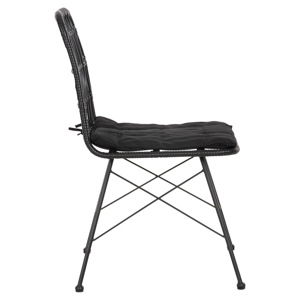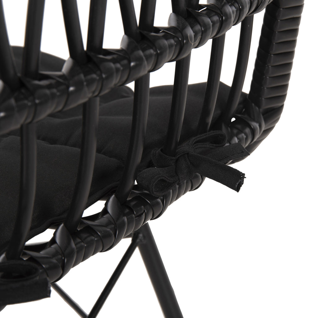 Столът изх. space ALLEGRA е модерен, удобен и стабилен. Конструкцията му с красивата плетена тъкан на гърба с комп. Ратан в ЧЕРЕН цвят, ще облагороди естетически пространството, където го поставите и ще грабва окото. Също така възглавницата е в черен нюанс като долната част на рамката и е завързана за стола с въжета, като го допълва идеално. РАЗМЕРИ: 52x52x83.5H см. Размери на седалката: 45,5х44,5 см. Размери на гърба: 40х42см. Височина на седалката: 44 см. Височина на крака: 40 см. Разстояние между краката: 52х52 см. Дебелина на възглавницата: 3см. изработен от полиестерен материал МАТЕРИАЛИ ЗА ИЗРАБОТКА: Рамката на фотьойла е изработена от масивен метал Φ8mm боядисан с електростатична боя. Информация: Електростатичното боядисване е процес на сухо покритие, използван като метално покритие. Електростатичното боядисване е нанасяне на сух прах чрез електростатичен процес, който след това се „свързва“ към метала чрез топлина. Краката в долната част имат пластмасови капачки за защита на пода. Седалката на стола е синтетичен ратан в ракита. Повечето градински мебели и външни мебели като цяло използват PVC синтетичен ратан, т.е. висококачествени изкуствени влакна. Това придава на конструкцията изключителна здравина и издръжливост при екстремни горещини или студени условия. ПОДДРЪЖКА: Поддръжката е лесна. Освен редовното почистване от прах, можете да го избършете с влажна кърпа. НЕ използваме препарати, белина и лакове. Ако все пак се налага използването на перилен препарат, тогава използваме мек сапун с топла вода. НЕ използваме машина под налягане или маркуч с налягане, защото това ще повреди влакната. *Продуктът се доставя във фабрична опаковка в несглобен вид. **Точното цветопредаване на продукта може леко да се различава от действителния продукт поради различни настройки на монитора.
