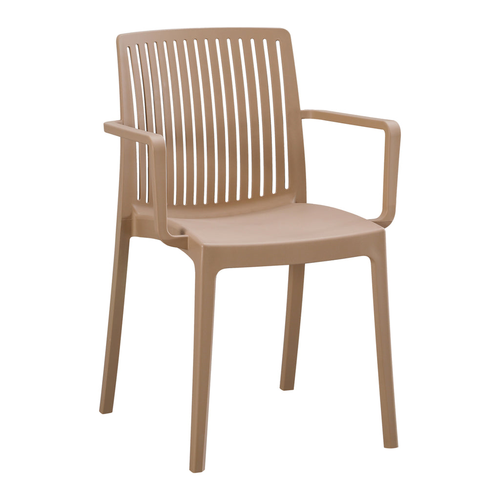 Полипропиленово кресло IDA в цвят КАПУЧИНО е ново попълнение в нашата гама. Това е идеално предложение за използване във външни пространства, независимо дали професионални (банкетни зали, кетъринг компании и др.) или за дома. Това е формован комплект седалка-облегалка-ръка-крака с високи ръце. Също така вентилираните облегалка и седалка на средна височина са с добър размер и със сигурност ще зарадват всеки, който седне в това кресло. РАЗМЕРИ: 41.3x54.2x81.8H см. Височина на седалката: 45,5 см. Размери на седалката: 37х44,5см. МАТЕРИАЛ НА ИЗРАБОТКА: Креслото е изработено от 100% висококачествен полипропилен. Полипропиленът е особено устойчив на тегло и вода, като същевременно има голяма устойчивост на температури до 125 градуса по Целзий. Освен това неговата издръжливост не се ограничава до тегло, вода и температура, но е необичайно устойчив на много химически разтворители, киселини и основи. ПОДДРЪЖКА: Полипропиленовите фотьойли се почистват лесно с влажна кърпа. Ако са на открито, могат да се почистват директно с течаща вода. ПРЕДИМСТВА: Полипропиленовото кресло има само предимства и е чудесен избор за външни бизнес пространства. По-специално, неговият сравнително удобен размер и издръжливост го правят най-добрият избор за банкетни зали или компании за кетъринг, или за всяко външно пространство, благодарение на страхотната му лекота за подреждане на големи количества. Но най-важното нещо за полипропилена е, че той е екологичен, защото може да се рециклира. ** Цветопредаването на продукта може леко да се различава от неговото фотографско представяне на вашия екран.