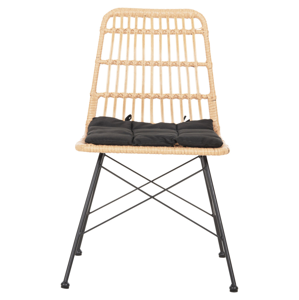 Стол ALLEGRA е модерен, удобен и стабилен. Изграждането му с ракита на син. Ратан в БЕЖОВ цвят, ще надгради естетически пространството, където ще го поставите и ще грабва окото. Също така възглавницата е в черен нюанс като долната част на рамката и е завързана за стола с въжета, като го допълва идеално. РАЗМЕРИ: 52x51.5x83.5H см. Размери на седалката: 45,5х43 см. Размери на гърба: 40х41см. Височина на седалката: 42 см. Височина на крака: 40 см. Разстояние между краката: 52х51,5 см. Дебелина на възглавницата: 3см. изработен от полиестерен материал МАТЕРИАЛИ ЗА ИЗРАБОТКА: Рамката на фотьойла е изработена от масивен метал Φ8mm боядисан с електростатична боя. Информация: Електростатичното боядисване е процес на сухо покритие, използван като метално покритие. Електростатичното боядисване е нанасяне на сух прах чрез електростатичен процес, който след това се „свързва“ към метала чрез топлина. Краката в долната част имат пластмасови капачки за защита на пода. Седалката на стола е синтетичен ратан в ракита. Повечето градински мебели и външни мебели като цяло използват PVC синтетичен ратан, т.е. висококачествени изкуствени влакна. Това придава на конструкцията изключителна здравина и издръжливост при екстремни горещини или студени условия. ПОДДРЪЖКА: Поддръжката е лесна. Освен редовното почистване от прах, можете да го избършете с влажна кърпа. НЕ използваме препарати, белина и лакове. Ако все пак се налага използването на перилен препарат, тогава използваме мек сапун с топла вода. НЕ използваме машина под налягане или маркуч с налягане, защото това ще повреди влакната. *Продуктът се доставя във фабрична опаковка в несглобен вид. **Точното цветопредаване на продукта може леко да се различава от действителния продукт поради различни настройки на монитора.