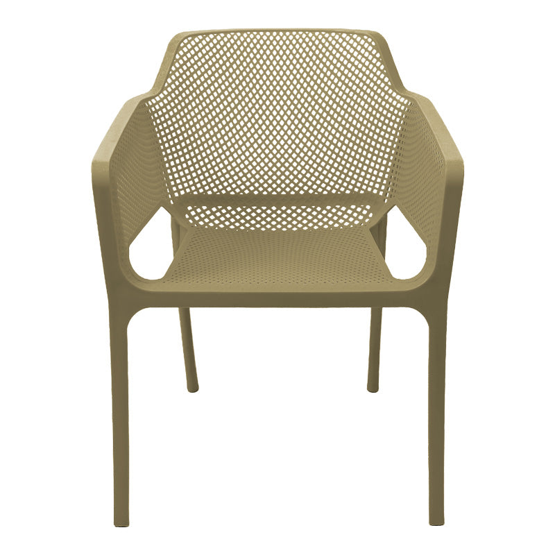 - Материал: Изработен от полипропилен с висока якост. Полипропиленът е известен със своята устойчивост на атмосферни условия, влага и UV лъчи, което прави стола идеален за употреба на открито.