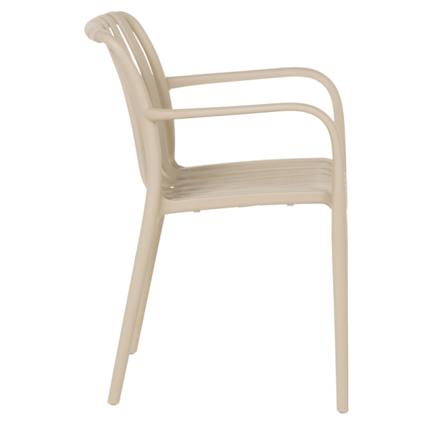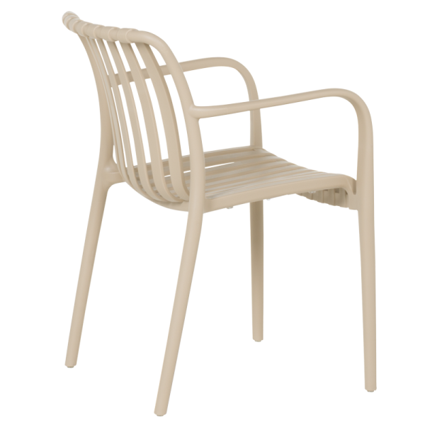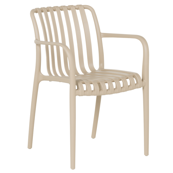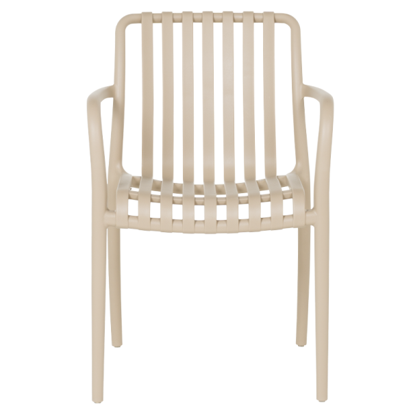 С елегантна визия и усещане за лекота, градинският стол TIZNIT съчетава комфорт и устойчивост. Изработен изцяло от полипропилен, той е подходящ за открити пространства и се отличава с интересен дизайн на облегалката и седалката. Лекият му корпус позволява лесно преместване, а подлакътниците допринасят за по-голямо удобство при сядане. Максималното натоварване е 120 кг.