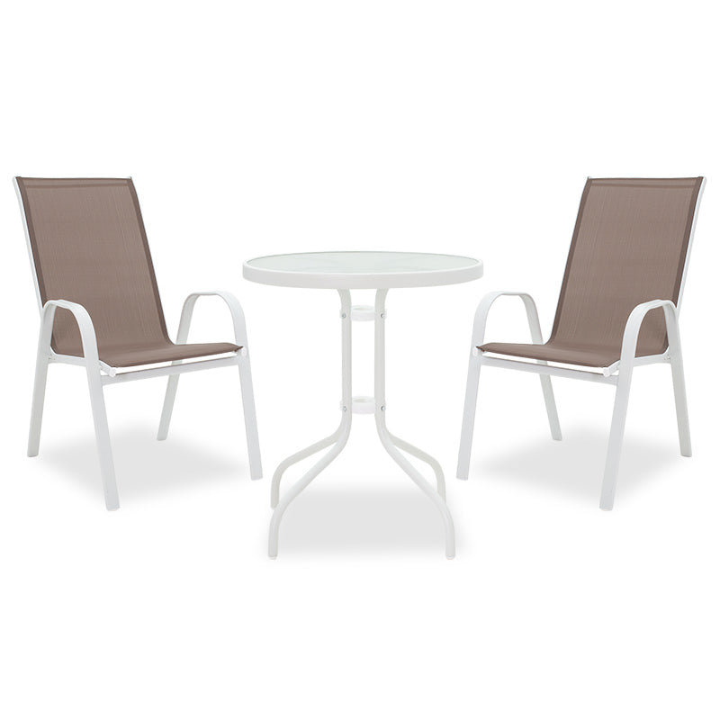 Градински трапезен комплект 3бр Calan-Watson метал бяло-текстилен кафяв