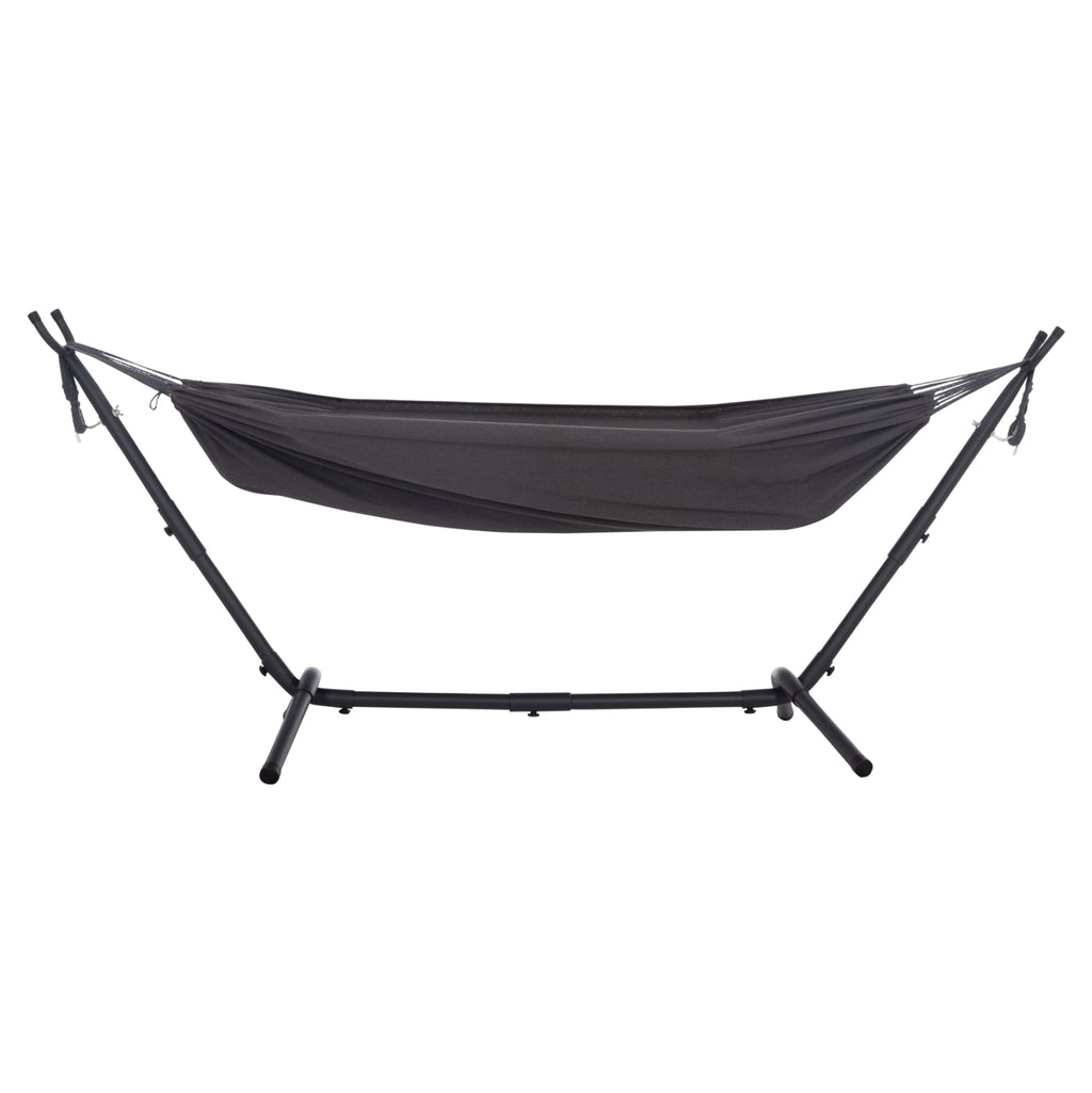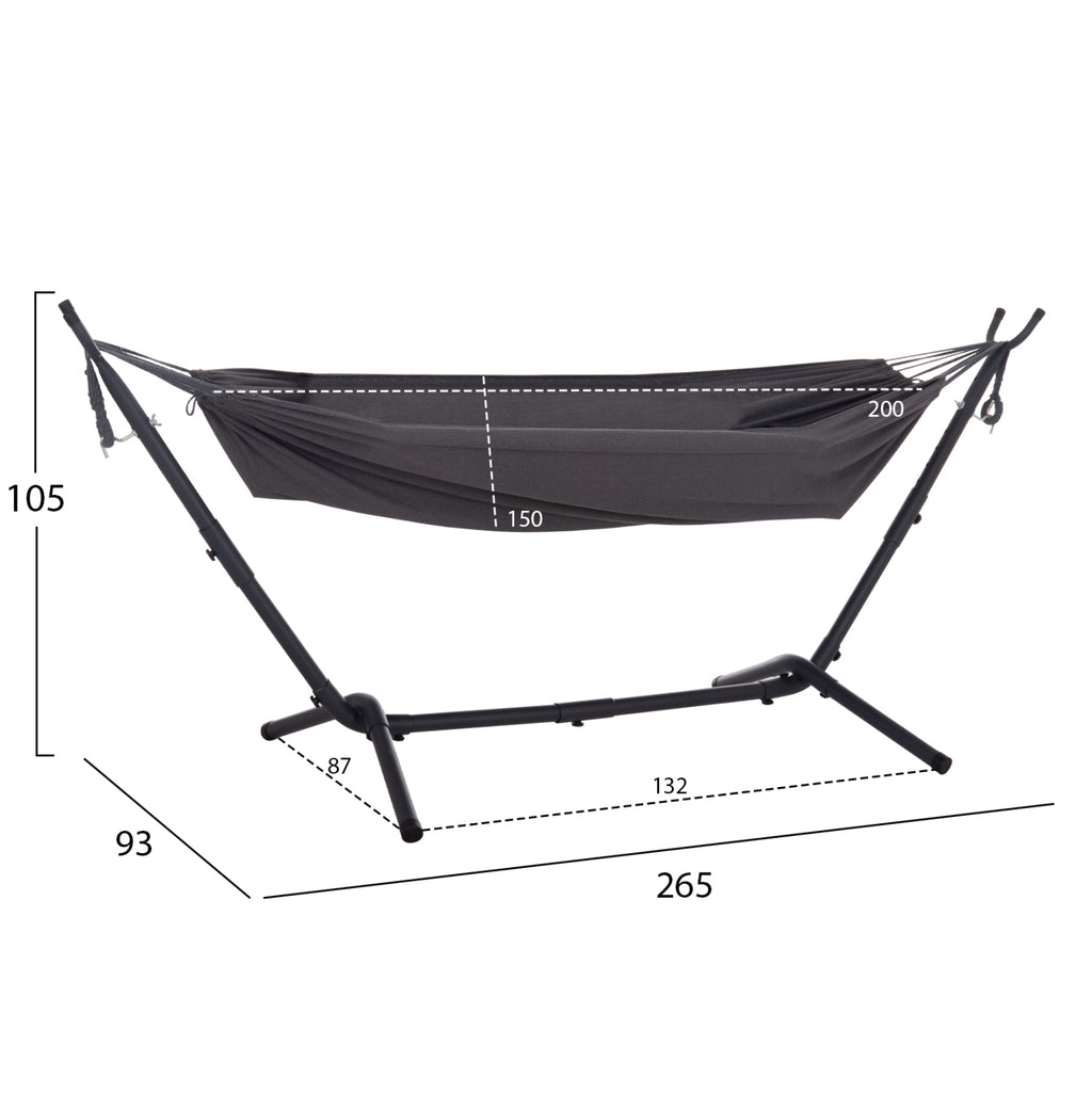 Единичният хамак CRAVE е още едно ново допълнение към нашата гама. През цялото време хамаците са олицетворение на безгрижието и релаксацията. Основата/рамката на хамака е изработена от подсилен метал в цвят КАРБОН, а дамаската е в ТЪМНО СИВ цвят. ***МАКСИМАЛНО ТЕГЛО: 120кг*** РАЗМЕРИ: 265x93x105H cm. Плат: 200х150 см. Разстояние между краката: 132x87 см. Чантичка: 42х21 см. ПОДДРЪЖКА: Всичко, от което се нуждае хамакът, е почистване от прах и при необходимост почистване с влажна кърпа. *Продуктът се доставя разглобен във фабрична опаковка. ** Цветопредаването на продукта може леко да се различава от неговото фотографско представяне на вашия екран.