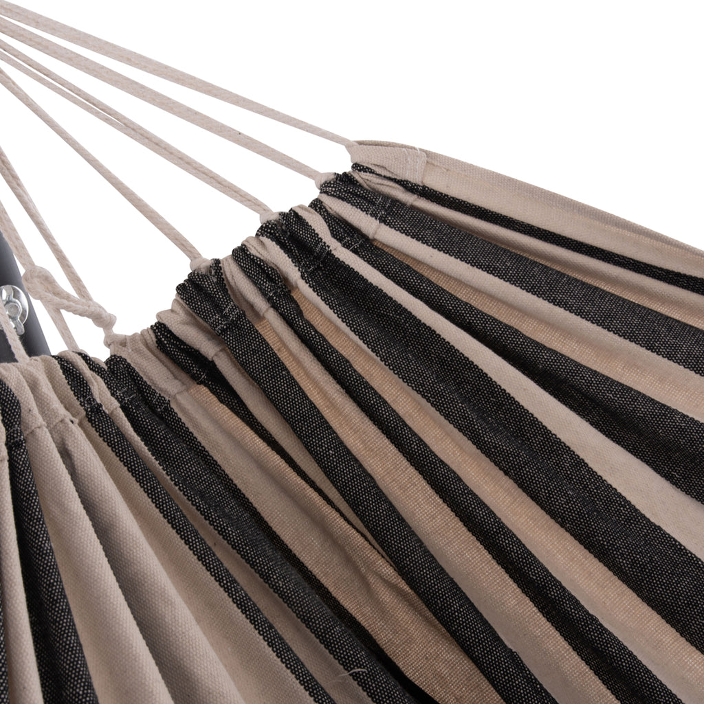 Единичният хамак CRAVE е още едно ново допълнение към нашата гама. През цялото време хамаците са олицетворение на безгрижието и релаксацията. Основата/рамката на хамака е изработена от подсилен метал в цвят КАРБОН, а дамаската е в ТЪМНО СИН цвят на БЕЛИ ивици. ***МАКСИМАЛНО ТЕГЛО: 120кг*** РАЗМЕРИ: 265x93x105H cm. Плат: 200х150 см. Разстояние между краката: 132x87 см. Чантичка: 42х21 см. ПОДДРЪЖКА: Всичко, от което се нуждае хамакът, е почистване от прах и при необходимост почистване с влажна кърпа. *Продуктът се доставя разглобен във фабрична опаковка. ** Цветопредаването на продукта може леко да се различава от неговото фотографско представяне на вашия екран.