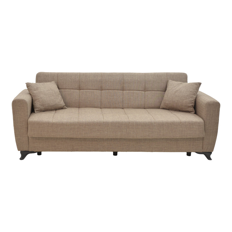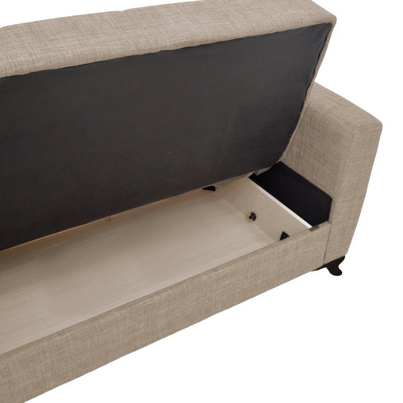 1. Modesto триместен разтегателен диван с място за съхранение, светлокафяв плат, 215x85x80см