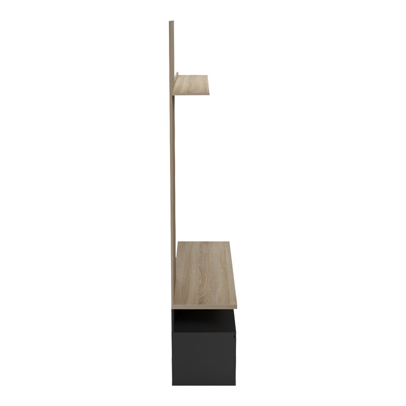 Той разполага с просторна повърхност за вашия телевизор, докато рафтовете осигуряват идеалното място за декоративни елементи, книги или устройства. Практичните чекмеджета в долната част предлагат скрито място за съхранение, за да поддържате пространството си спретнато и организирано.