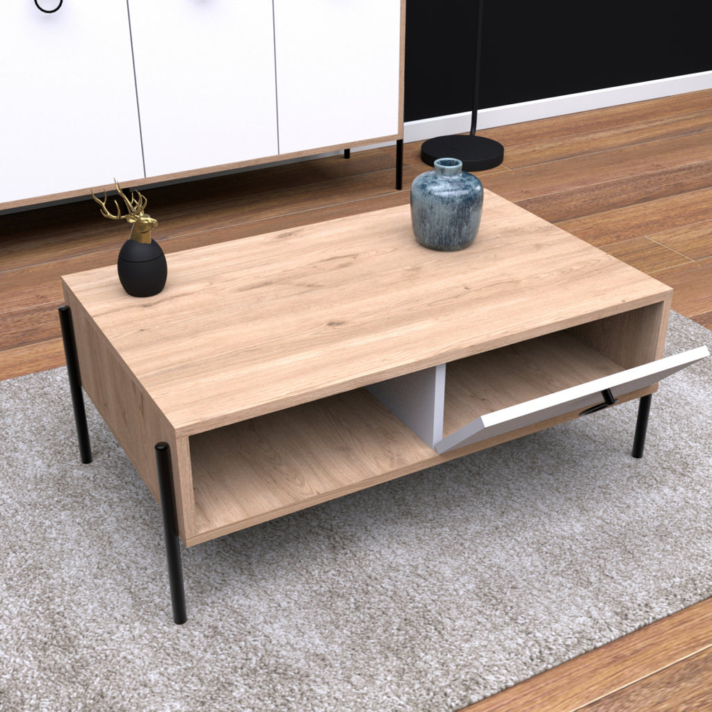 Холна маса в нюанс сонама - бяла 90х56х37,6 см. Помощна модерна помощна маса в минималистичен квадратен дизайн с място за списания и дребни предмети и просторно чекмедже. Помощна мебел с голяма издръжливост и функционалност, необходима за дома или офиса. Изработен от висококачествен меламин с дебелина 18 мм и метални крака с устойчивост на износване и време. Размери: 90х56х37.6см. Размери на рафта: 41х56х20,5см. Размери на чекмеджето: 45x56x20.5 см. Европейско производство и произход. Продуктът се предлага разглобен във фабрична опаковка.
