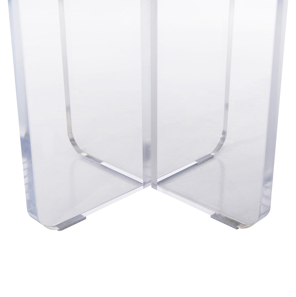 ACRYLON е ниска кръгла холна маса за всекидневна в цвят БЯЛ МРАМОР. Красивият скосен плот за маса лежи (завинтен) върху прозрачни АКРИЛНИ крака. Тази маса ще обнови естетически вашата всекидневна, като същевременно може да съчетае много различни стилове и цветове в околното пространство. РАЗМЕРИ: Φ40x41Y см. Дебелина на повърхността: 2см. Височина на детето: 38,5 см. Обиколка на крака: Φ28см. Разстояние между краката: 13,5 см. КОНСТРУКТИВНИ МАТЕРИАЛИ: Повърхността е изработена от HPL, монтирана отвътре върху MDF. HPL е бакелит, известен още като ламинат, който е покривен материал, изработен от синтетична смола, издръжлив и твърд. Следователно истинското му име е ламинат с високо налягане „HPL“. Бакелитът като материал може да има матово или гланцово покритие. Поставя се върху MDF и основните му характеристики са устойчивостта му на удари, абразия и петна, устойчивостта му на създаване на бактерии и накрая устойчивостта на цвета му на светлина и изкуствено осветление. Той също така показва устойчивост на високи температури, с отлична устойчивост на огън, надраскване и особено висока водоустойчивост. Краката са акрилни. Акрилът, известен също като плексиглас, е вид устойчива на разбиване, гъвкава пластмаса - този материал е здрав и е малко вероятно да се счупи. Акрилът също има тенденция да бъде дори по-прозрачен от стъклото и се извлича от полипропилен. ПОДДРЪЖКА: Почистването на прах на редовни интервали и забърсването с влажна кърпа е достатъчно за поддръжка на масата. За повърхността можете също да използвате меки търговски почистващи препарати, но не и върху акрилните крака, където, както споменахме, избърсването с влажна кърпа е идеално. * Холната маса се доставя разглобена във фабрична опаковка. ** Цветопредаването на продукта може леко да се различава от неговото фотографско представяне на вашия екран.