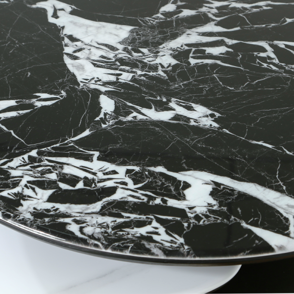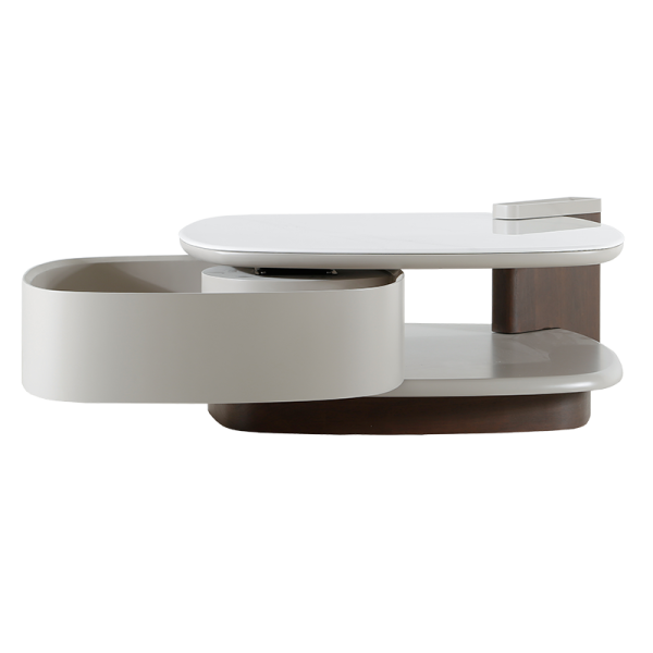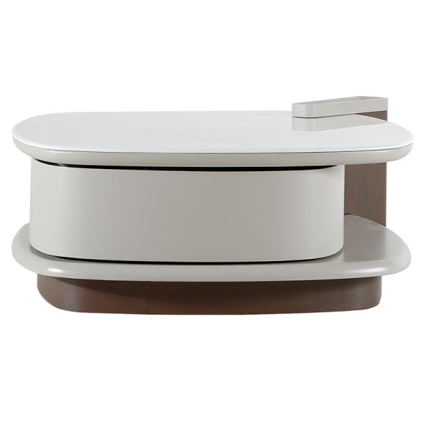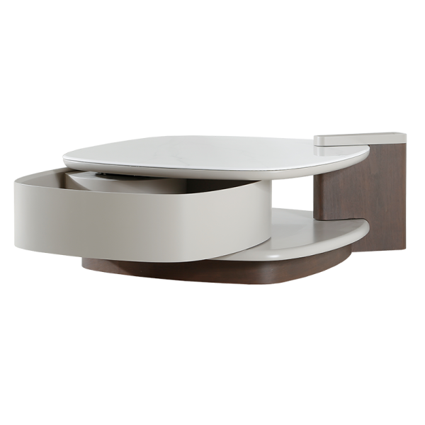Холната маса ALDO впечатлява с артистичен дизайн и оригинална геометрия, превръщайки се в изискан акцент във всяка модерна дневна. Плотът съчетава изтънчената визия на керамика с устойчивостта на MDF, а основата е изцяло изработена от MDF с ефект на дърво за допълнителен уют и топлина. Отличителният елемент е скритото чекмедже, което се отваря чрез плавно завъртане – практично решение с дизайнерски почерк. Идеален избор за интериори, в които стилът и функционалността вървят ръка за ръка.