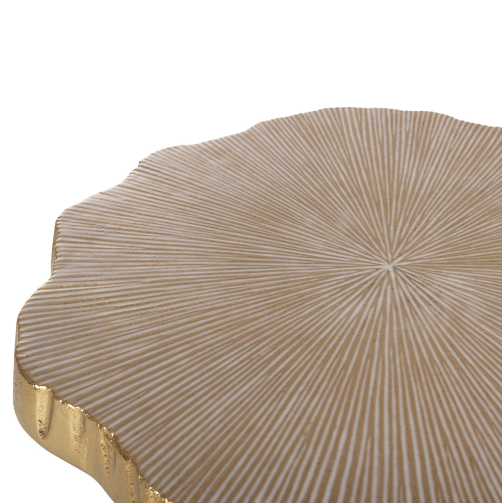 ANGUL е холна маса с 3 крака, изработена изцяло от метал в ЗЛАТЕН и БЯЛ цвят. Особеността на тази маса е, че тя симулира "парче" от ствол на дърво, поради което формата на повърхността й е неправилна. Това ново допълнение към нашата гама ще даде на вашето пространство напълно различен облик. РАЗМЕРИ: 48x40x35H см. Височина на крака: 30,5см. Разстояние между краката: 29см. ПОДДРЪЖКА: Необходимо е само почистване от прах и при необходимост почистване с влажна кърпа. *Масата се доставя разглобена във фабрична опаковка ** Цветопредаването на продукта може леко да се различава от фотографското изображение на вашия екран.