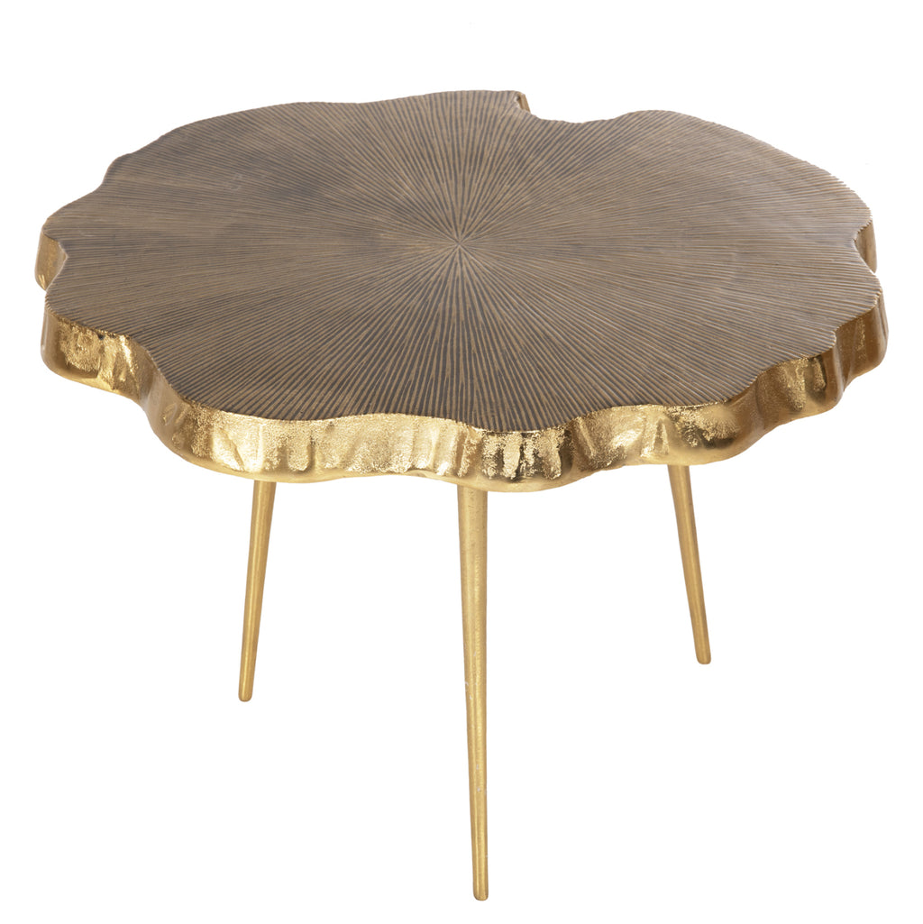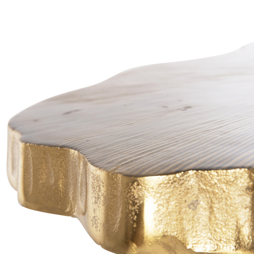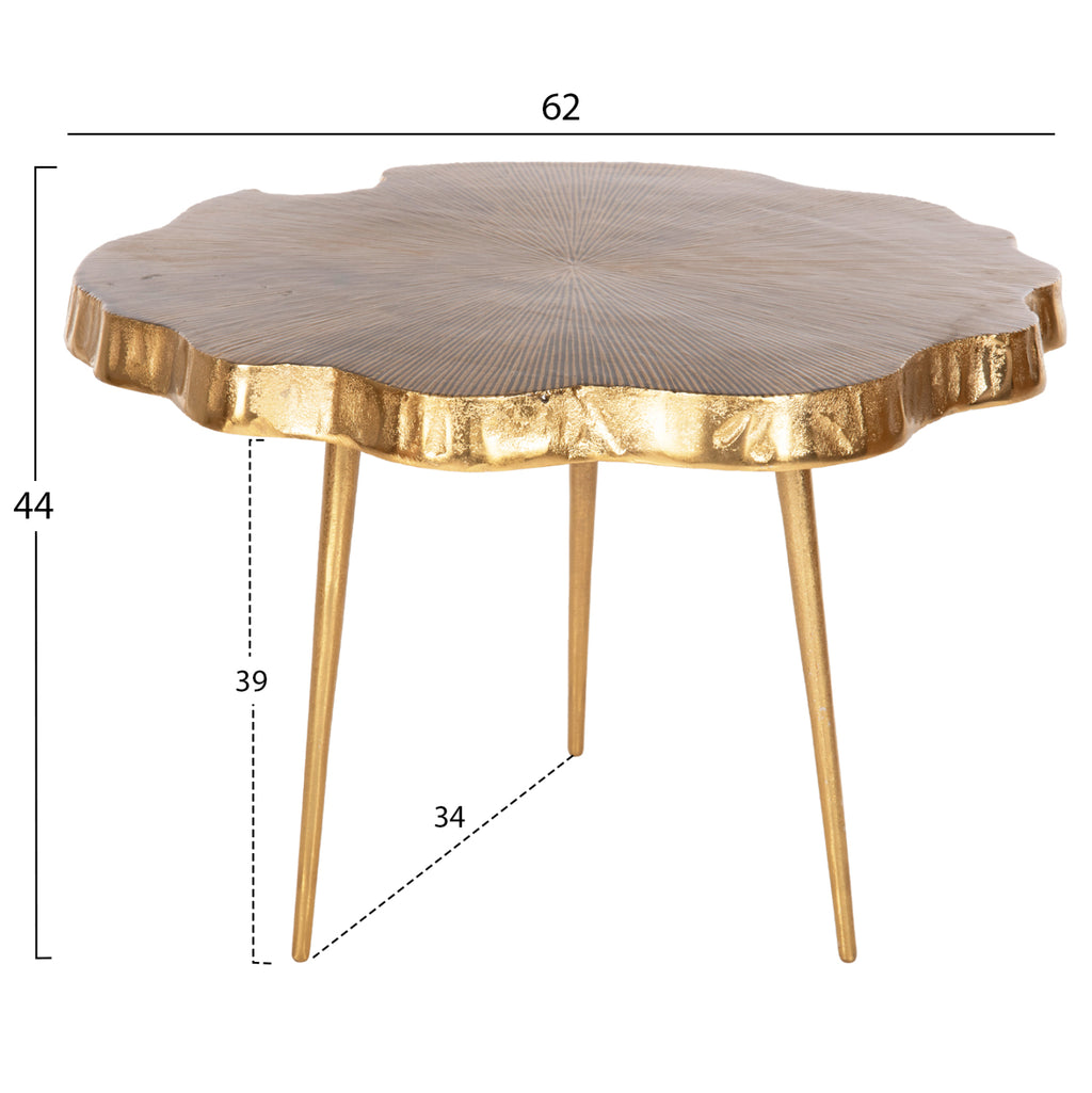 ANGUL е холна маса с 3 крака, изработена изцяло от метал в ЗЛАТНО и ЧЕРНО. Особеността на тази маса е, че тя симулира "парче" от ствол на дърво, поради което формата на повърхността й е неправилна. Това ново допълнение към нашата гама ще даде на вашето пространство напълно различен облик. РАЗМЕРИ: 62x62x44H см. Височина на крака: 39 см. Разстояние между краката: 34см. ПОДДРЪЖКА: Необходимо е само почистване от прах и при необходимост почистване с влажна кърпа. *Масата се доставя разглобена във фабрична опаковка ** Цветопредаването на продукта може леко да се различава от фотографското изображение на вашия екран.