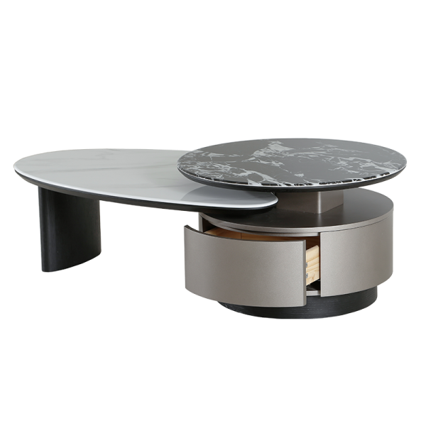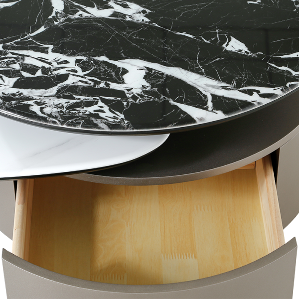 Холна маса BAKER – черно-бяло е стилно и практично допълнение към интериора на всекидневната. Плотът е изработен от керамика и MDF с естествен фурнир, което придава елегантен завършек и усещане за висока класа. Основата е от MDF с прахово боядисано покритие в черен цвят. Моделът разполага с едно чекмедже с корпус от борова дървесина и механизъм за плавно затваряне – идеално за съхранение на дребни вещи.