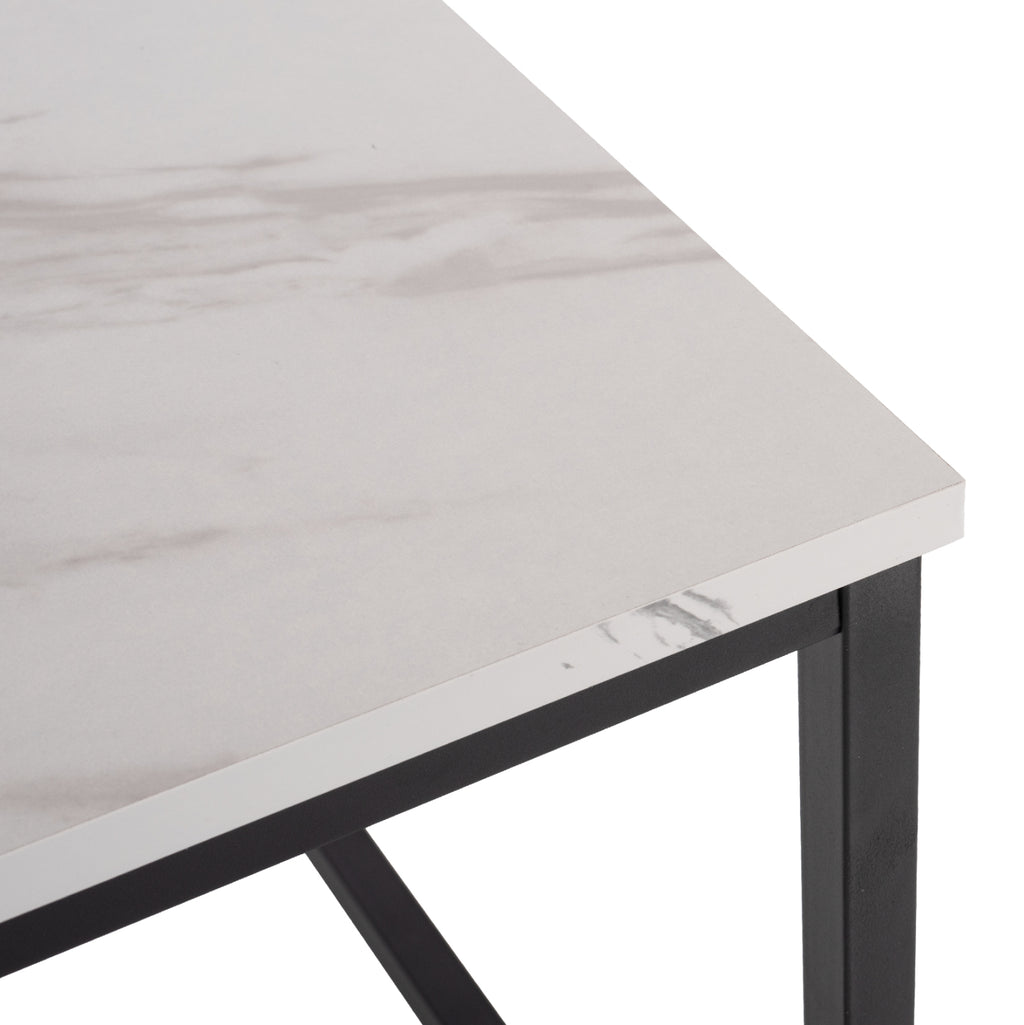 Маса за кафе ΜΜ8942.12----- BRAYLEN ще даде глътка обновяване и свежест на вашия хол. Това е квадратна масичка за кафе с крака в стил пиедестал. Тази основа е метална в черен цвят, а повърхността й има вид на бял мрамор. РАЗМЕРИ: 75x75x43H см. Размери на метала: 20x20 mm МАТЕРИАЛИ НА ИЗРАБОТКА: Повърхността е изработена от висококачествен меламин с дебелина 15 mm. Меламинът е вид дървесина под формата на ПДЧ (панел). Като материал е много издръжлив и с голяма твърдост. Така че това е синтетичен материал с много твърда повърхност, което го прави много устойчив на драскотини, абразия и петна. Основата е изработена от метал с електростатично боядисване. Електростатичното боядисване е процес на сухо покритие, използван като метално покритие. Електростатичното боядисване е нанасяне на сух прах чрез електростатичен процес, който след това се „свързва“ към метала чрез топлина. ПОДДРЪЖКА: Както повърхността, така и краката се почистват лесно с влажна кърпа. ПРЕДИМСТВА: •Здрава конструкция •Качествени материали и начин на изработка •Естетически красиви мебели •Практични за използване •Имат предпазна пластмаса на краката за защита на пода *Масата се доставя разглобена във фабрична опаковка