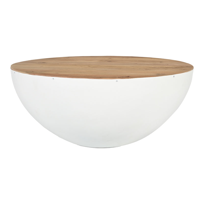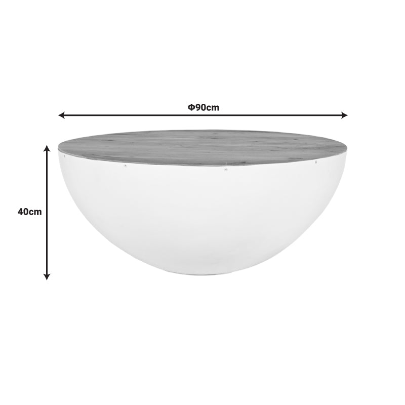 - Повърхността е изработена от висококачествено масивно акациево дърво с естествено покритие, а основата му е изработена от изключително издръжлив метал в бял нюанс.