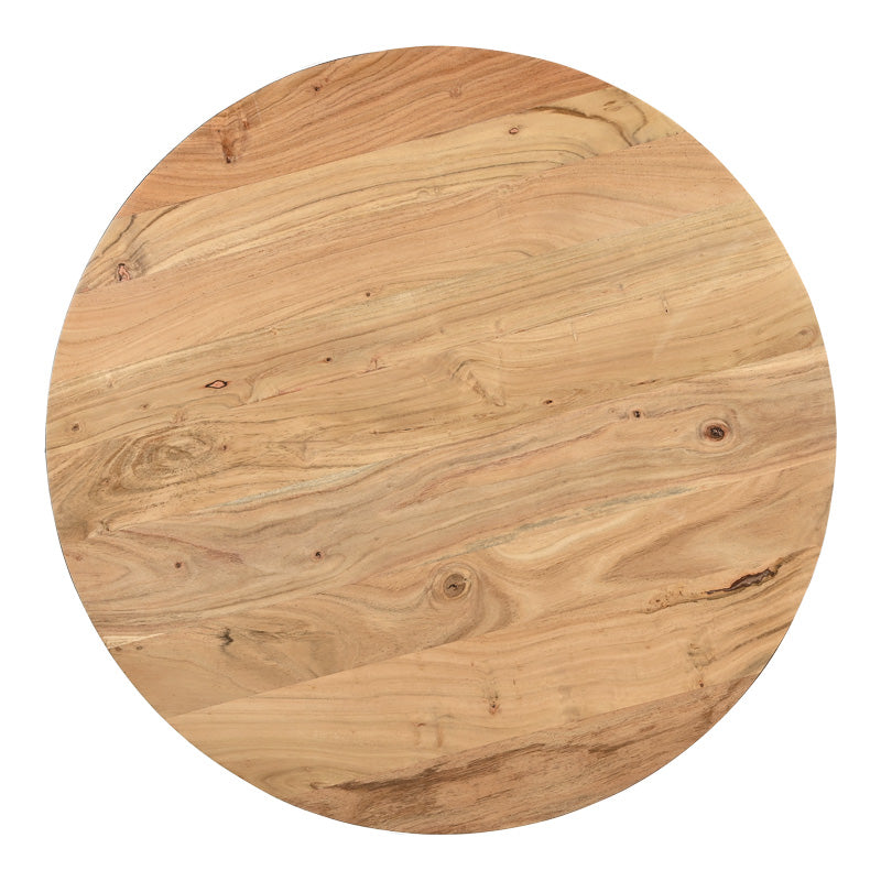 - Повърхността е изработена от висококачествено масивно акациево дърво с естествено покритие, а основата му е изработена от изключително издръжлив метал в бял нюанс.