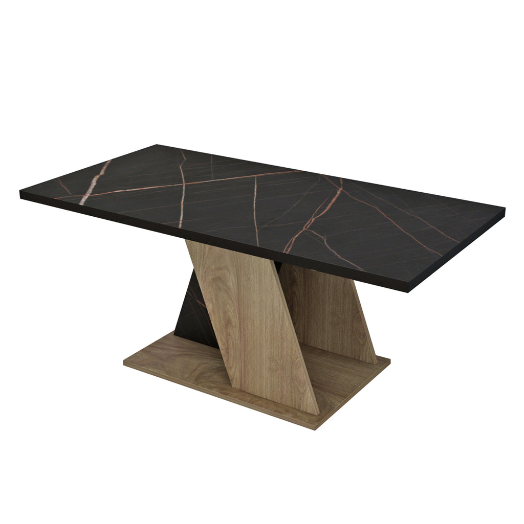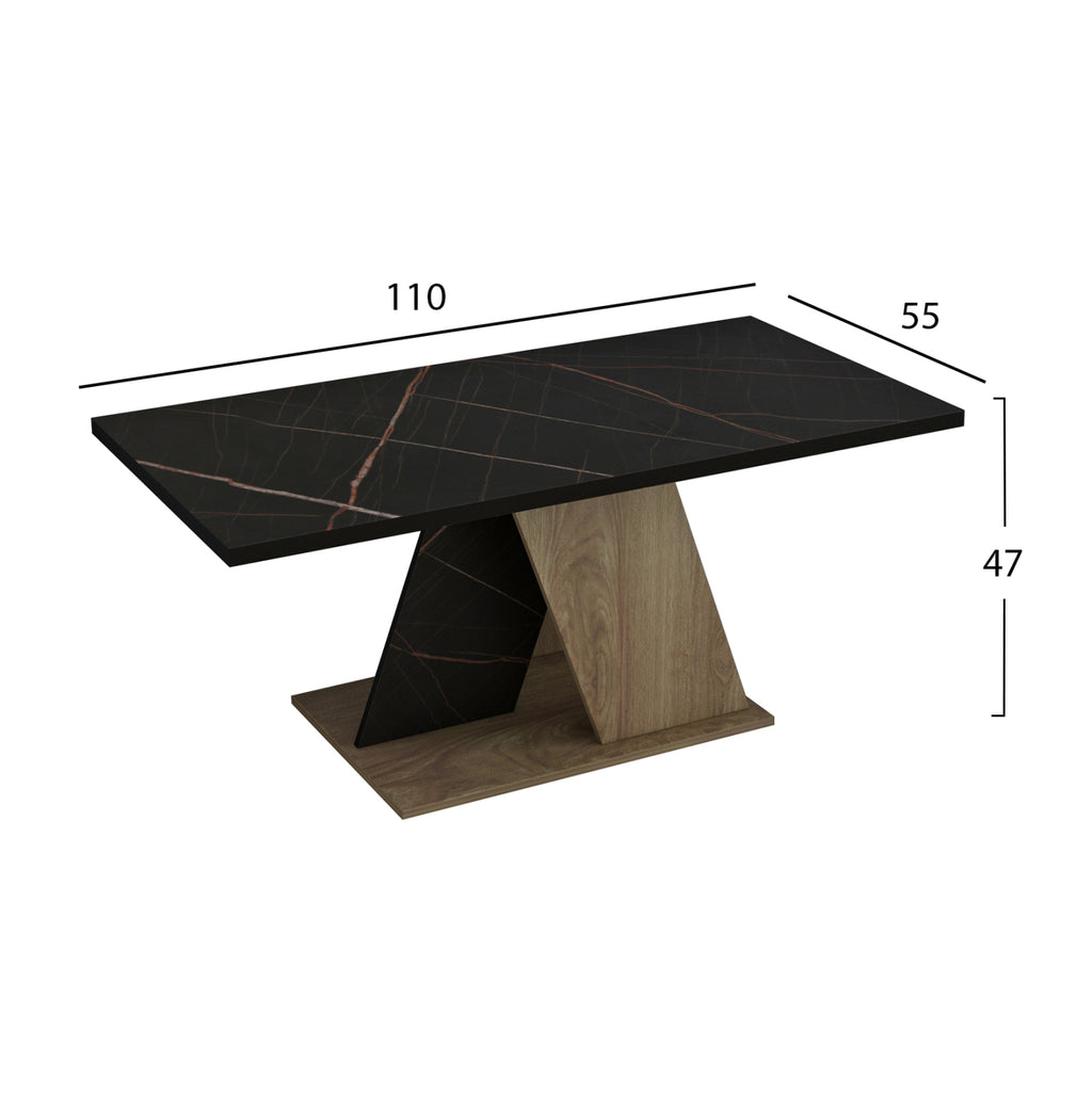 Меламиновата холна маса DILE е качествено и модерно предложение за всеки хол. Двуцветният цвят с повърхност в цвят ЧЕРЕН МРАМОР и крака в НАТУРАЛЕН цвят с кръстосано разположение, ще придаде изцяло нов облик на вашето пространство. РАЗМЕРИ: 110X55X47H см. МАТЕРИАЛИ НА ИЗРАБОТКАТА: Цялата мебел е изработена от висококачествен меламин 15 и 25 мм. Меламинът е вид дървесина под формата на ПДЧ, тоест под формата на плоскост. Като материал е много издръжлив и с голяма твърдост. Така че това е синтетичен материал с много твърда повърхност, което го прави много устойчив на драскотини, абразия и петна. ПОДДРЪЖКА: Можете да забършете всички повърхности с влажна кърпа и това е достатъчно, за да изглежда бюрото ви отново като ново. За упорити петна можете да използвате мек почистващ препарат. ПРЕДИМСТВА: •Стабилна конструкция •Качествени материали •Естетически красива конструкция •Идеален за много пространства •Лесно сглобяване (препоръчваме сглобяване от 2 души) *Продуктът се доставя несглобен във фабрична опаковка с подробни инструкции за сглобяване ** Цветопредаването на продукта може леко да се различава от фотографското му представяне на вашия екран.
