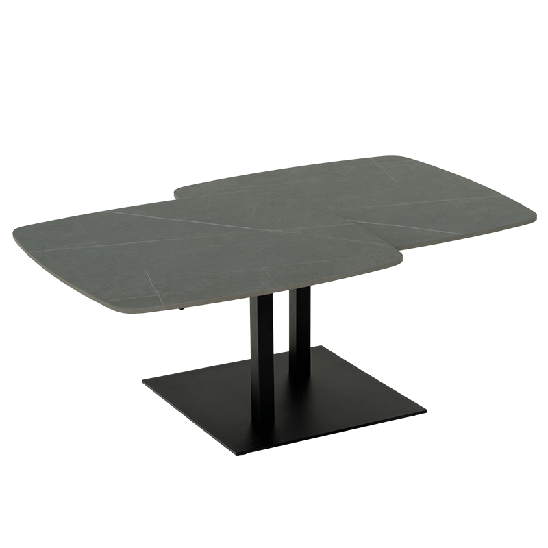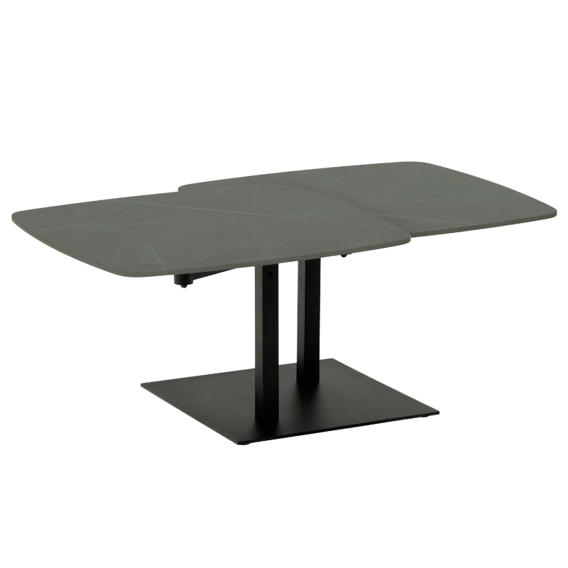 DORADO холна маса е стилно решение за модерния интериор. Плотът е изработен от висококачествена керамика с дебелина 12 мм, с дължина 122 см и иновативен механизъм за промяна на широчината. От класическа правоъгълна форма, масата лесно се трансформира в елегантен и функционален дизайн, който привлича вниманието. Основата от праховобоядисан метал добавя изискан завършек и подчертава модерния ѝ характер. Пълна информация за размерите и характеристиките на модела ще намерите в таблицата в таб/поле "Техническа информация".