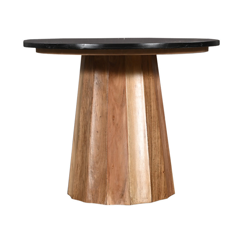 Повишете пространството си за хранене с тази зашеметяваща кръгла маса! Тази маса е нещо повече от мебел - това е изящна част, предназначена да привлече всяко око. Перфектен за добавяне на стил и функционалност към вашия дом, той съчетава модерен дизайн с вечен чар. Не пропускайте шанса да притежавате тази уникална маса, която внася изтънченост и елегантност във всяко пространство! Технически спецификации Плот, изработен от висококачествен черен мрамор за луксозно и изискано покритие. Основа, изработена от масивно акациево дърво в естествен тон, предлагащо превъзходна издръжливост и визуална топлина. Размери на продукта Дължина: 120 см Ширина: 120 см Височина: 76 см Информация за материала Акациево дърво: Акацията е твърда дървесина, известна със своята устойчивост на износване и разкъсване, което я прави идеална както за вътрешни, така и за външни мебели. Естественият му цвят придава красота, а здравината му осигурява дълголетие. Той се използва широко в мебели, подови настилки, плотове и външни конструкции като градини и балкони. Мрамор: Мраморът е метаморфна седиментна скала, получена от варовик, съставена предимно от калцит (CaCO₃) или комбинация от калцит и доломит. В допълнение към историческата си употреба в сгради и скулптури, мраморът е намерил специално място в дизайна на мебелите. Неговата естествена красота, издръжливост и луксозен външен вид го правят идеален материал за създаване на уникални и вечни парчета. Инструкции за поддръжка Акациево дърво: Почистете с мек сапун и вода. Препоръчва се редовно прилагане на продукти за грижа за дървото, за да се запази естествения му вид и издръжливост. Мрамор: Почиствайте редовно с мека, влажна кърпа и мек почистващ препарат за мрамор. Избягвайте киселинни почистващи препарати, тъй като те могат да повредят повърхността. Въздържайте се от използване на абразивни продукти, които могат да надраскат мрамора и никога не поставяйте горещи предмети директно върху повърхността, за да предотвратите напукване поради резки температурни промени. Допълнителна информация Продуктът се доставя несглобен във фабрична опаковка с включено подробно ръководство за сглобяване. Забележка: Цветът на продукта може леко да се различава от това, което виждате на екрана си поради настройките на дисплея на монитора.